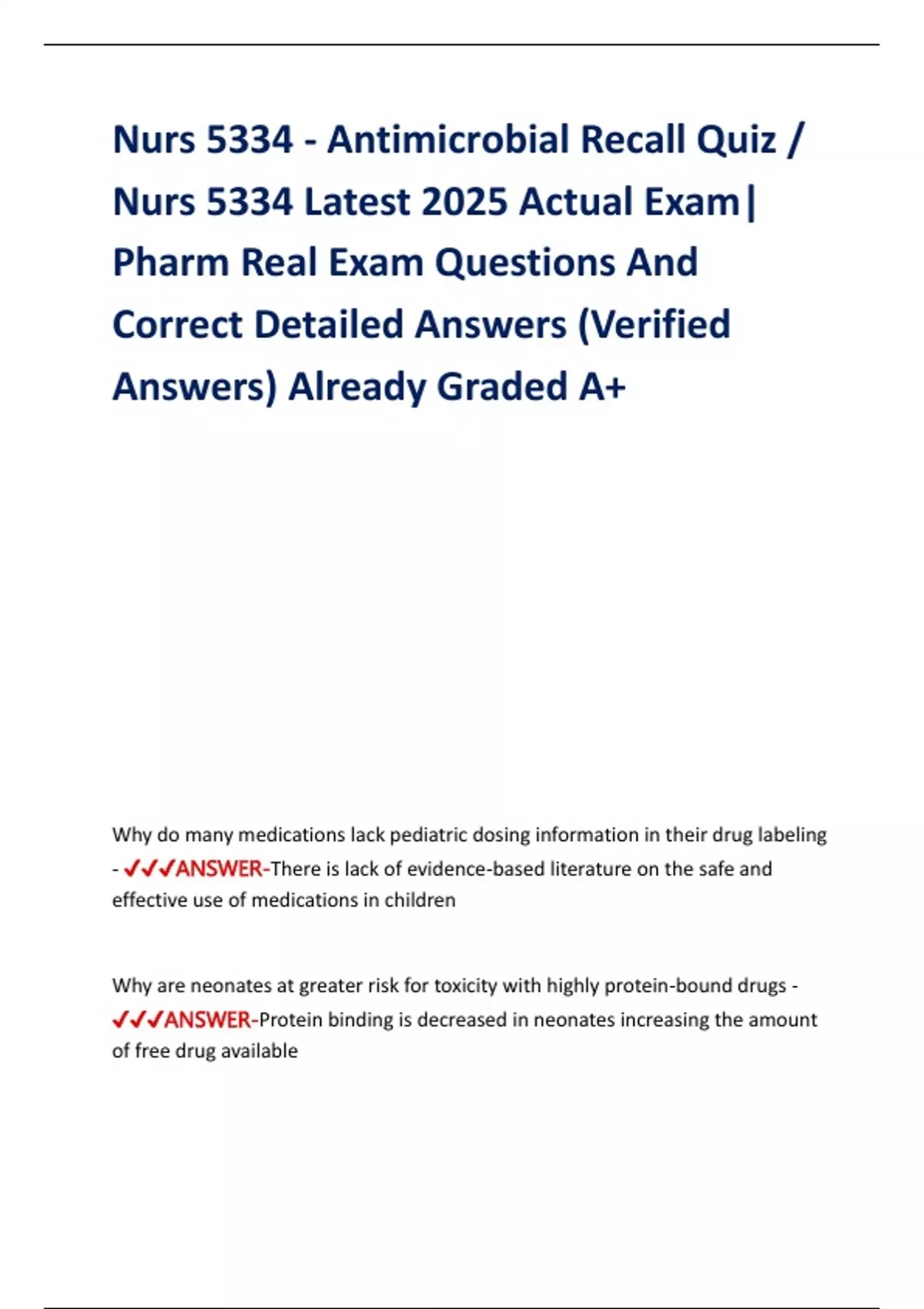 ✔✔✔ANSWER-Protein binding is decreased in neonates increasing the amount