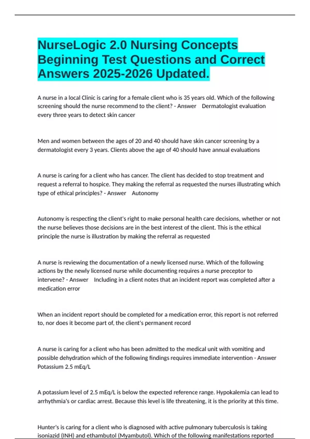 screening should the nurse recommend to the client? - Answer Dermatologist evaluation