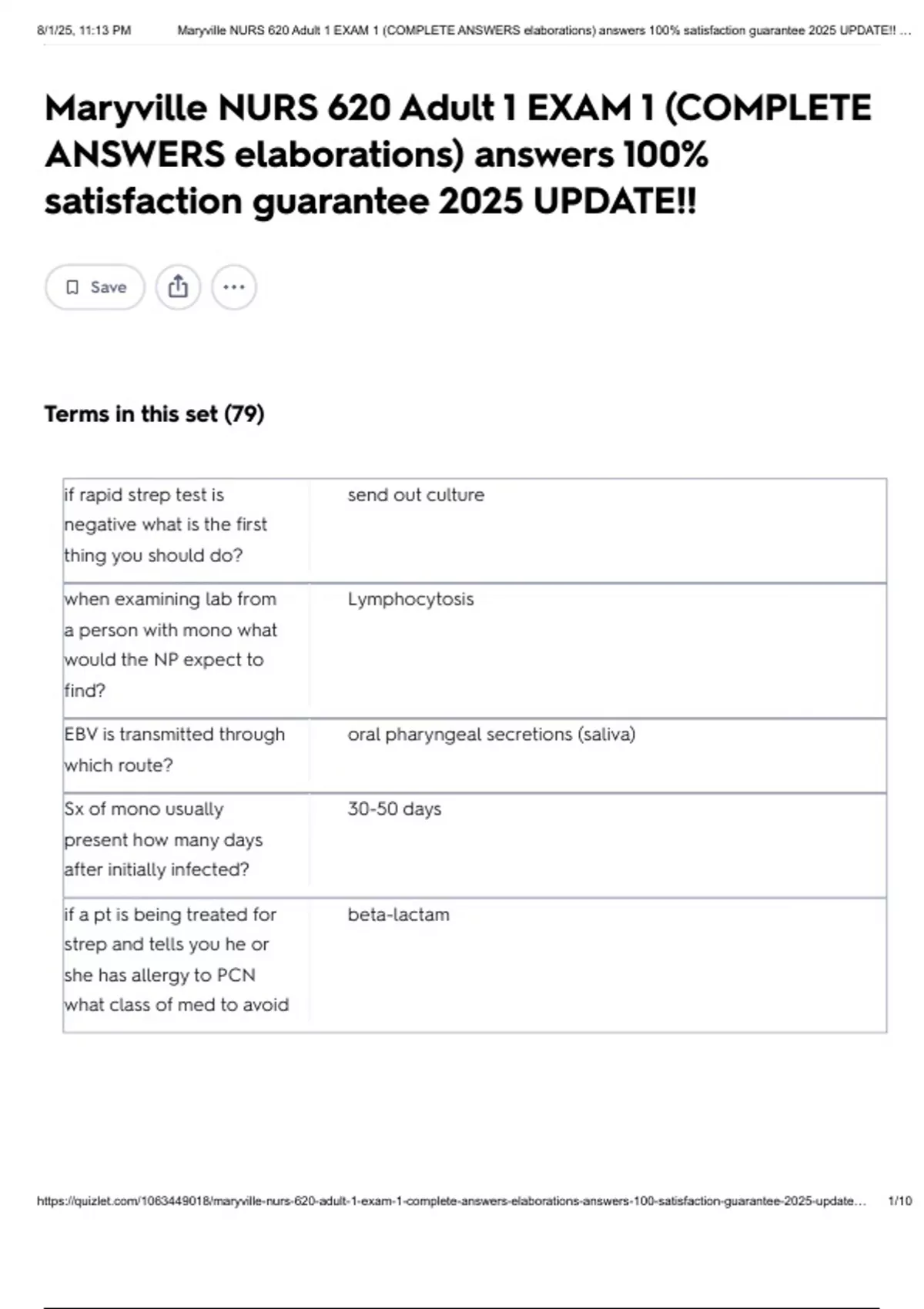 8/1/25, 11:13 PM Maryville NURS 620 Adult 1 EXAM 1 (COMPLETE ANSWERS elaborations) answers 100% satisfaction guarantee 2025 UPDATE!! …