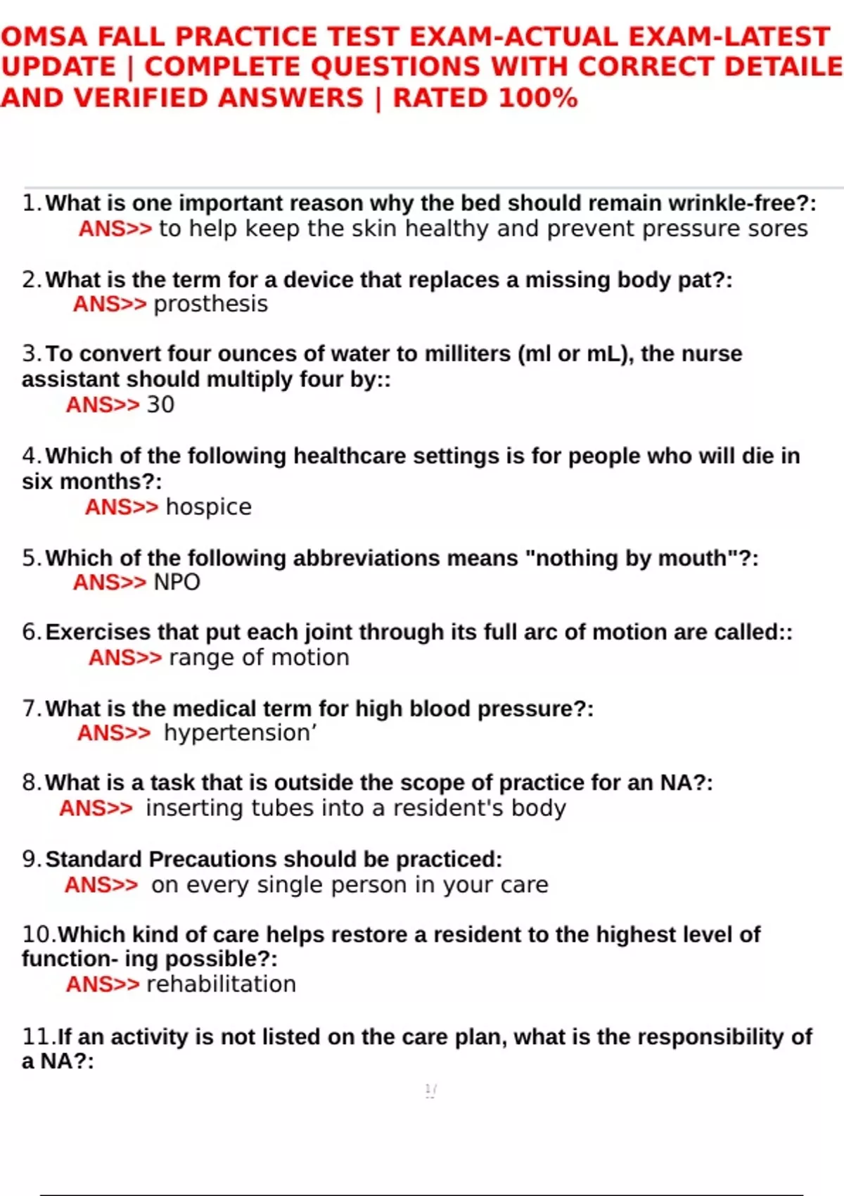 OMSA FALL PRACTICE TEST EXAM-ACTUAL EXAM-LATEST