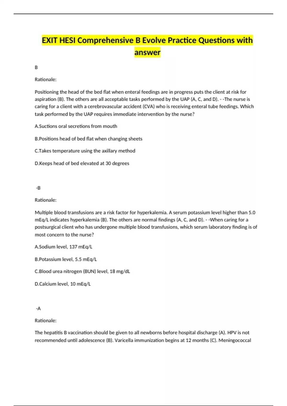 EXIT HESI Comprehensive B Evolve Practice Questions with
