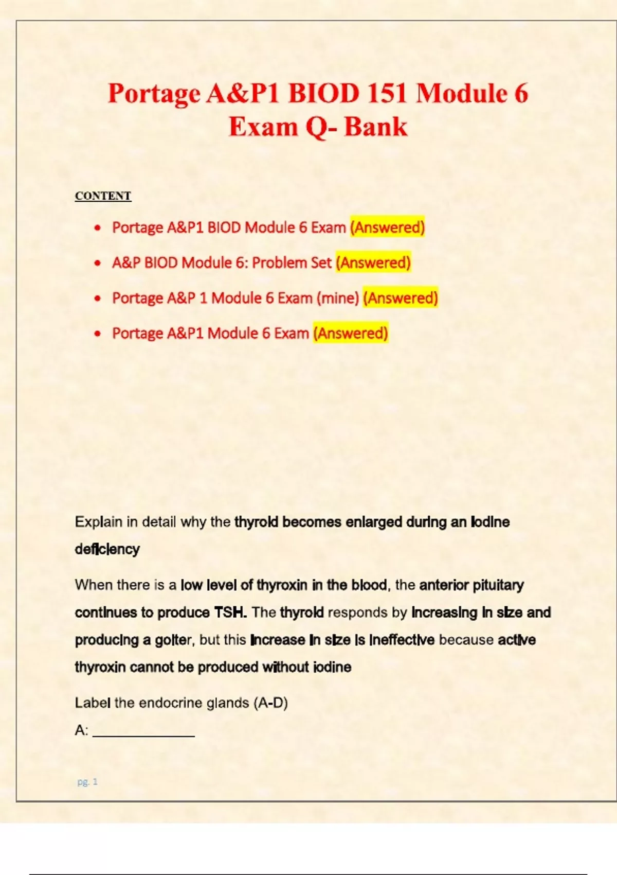 portage ap1 biod 151 module 6 exam q bank