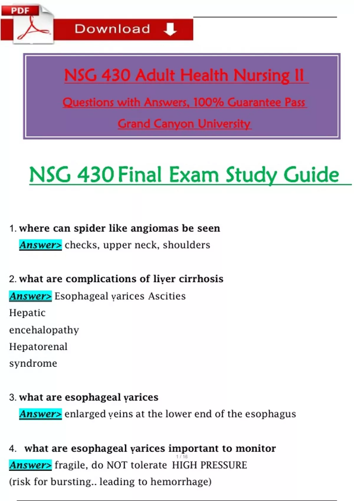 NSG 430 Final Exam Study Guide