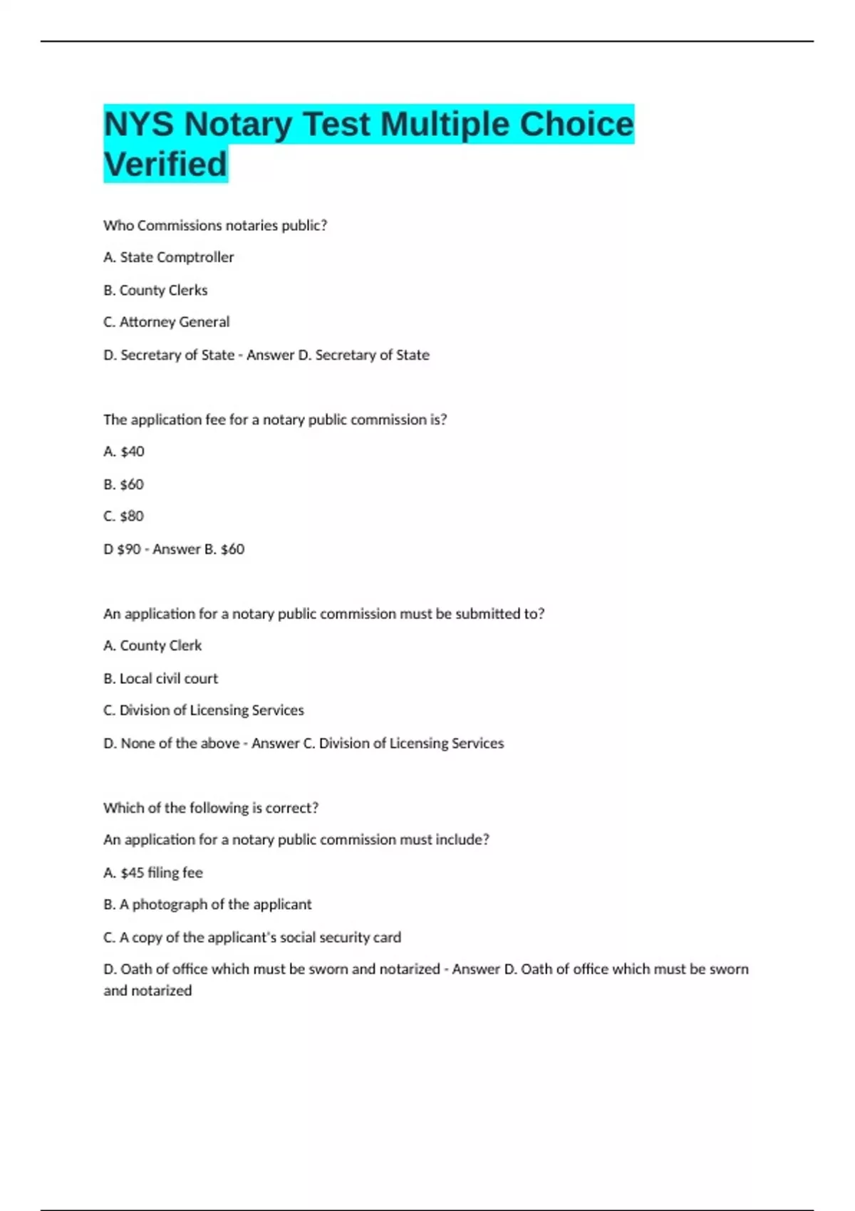 D. None of the above. - Answer B. application for a notary public commission