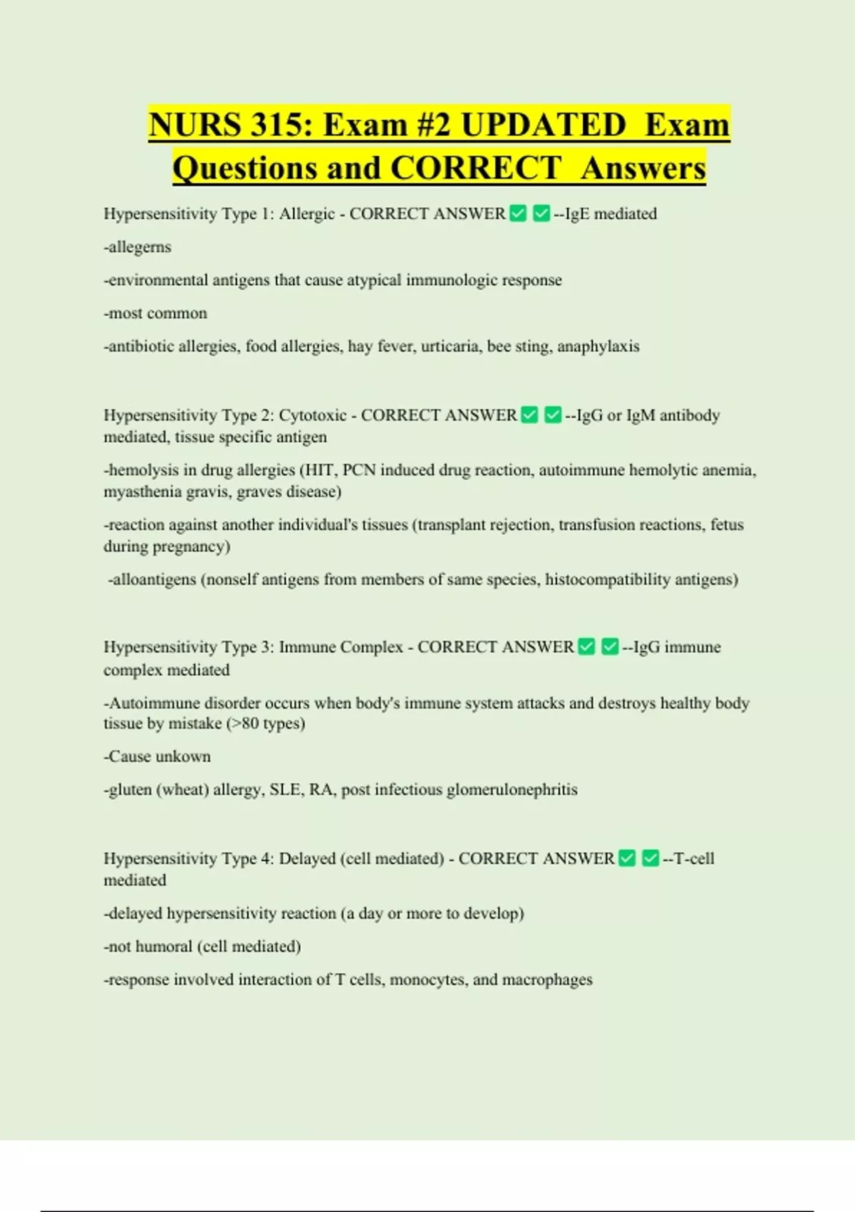 Hypersensitivity Type 1: Allergic - CORRECT ANSWER --IgE mediated