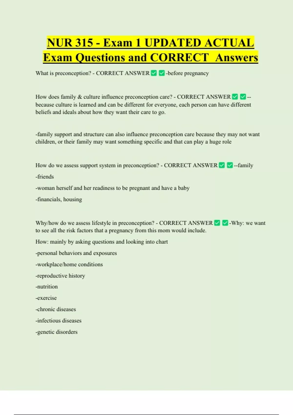 What is preconception? - CORRECT ANSWER -before pregnancy