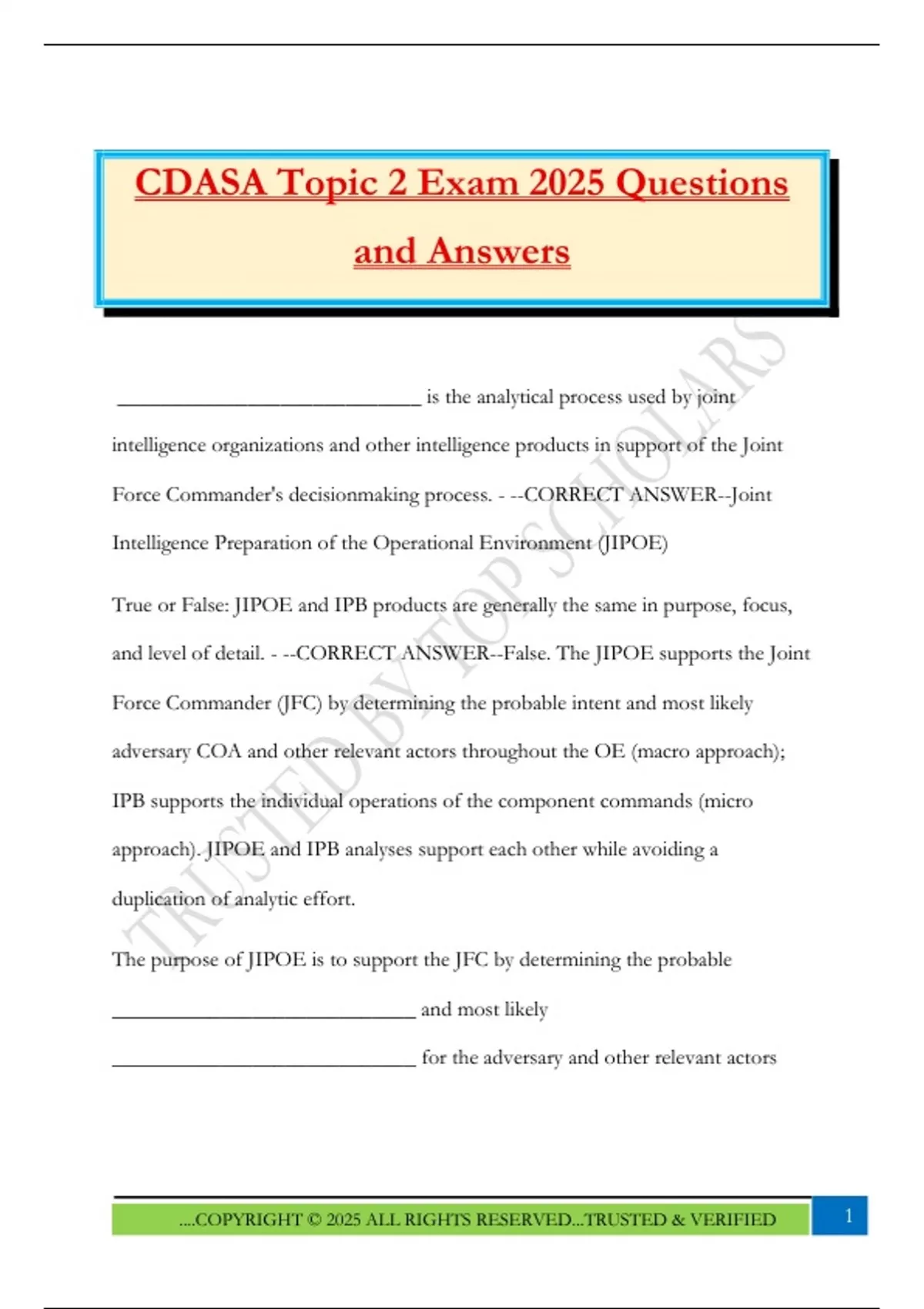 CDASA Topic 2 Exam 2025 Questions and Answers