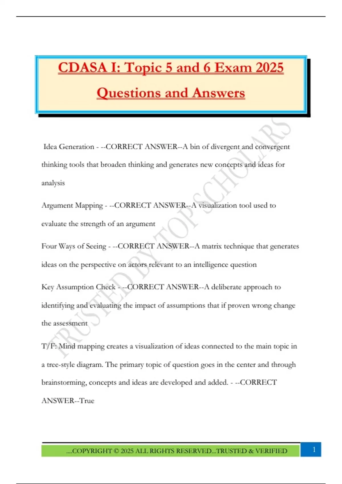 CDASA I: Topic 5 and 6 Exam 2025 Questions and Answers