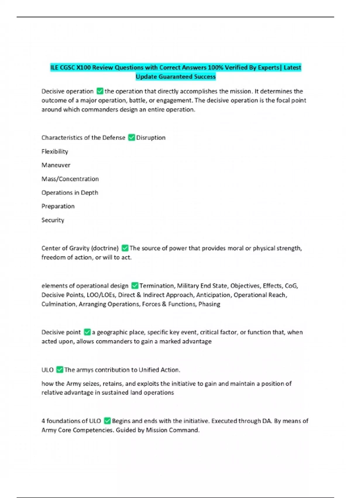ILE CGSC X100 Review Questions with Correct Answers 100% Verified By Experts| Latest Update Guaranteed Success