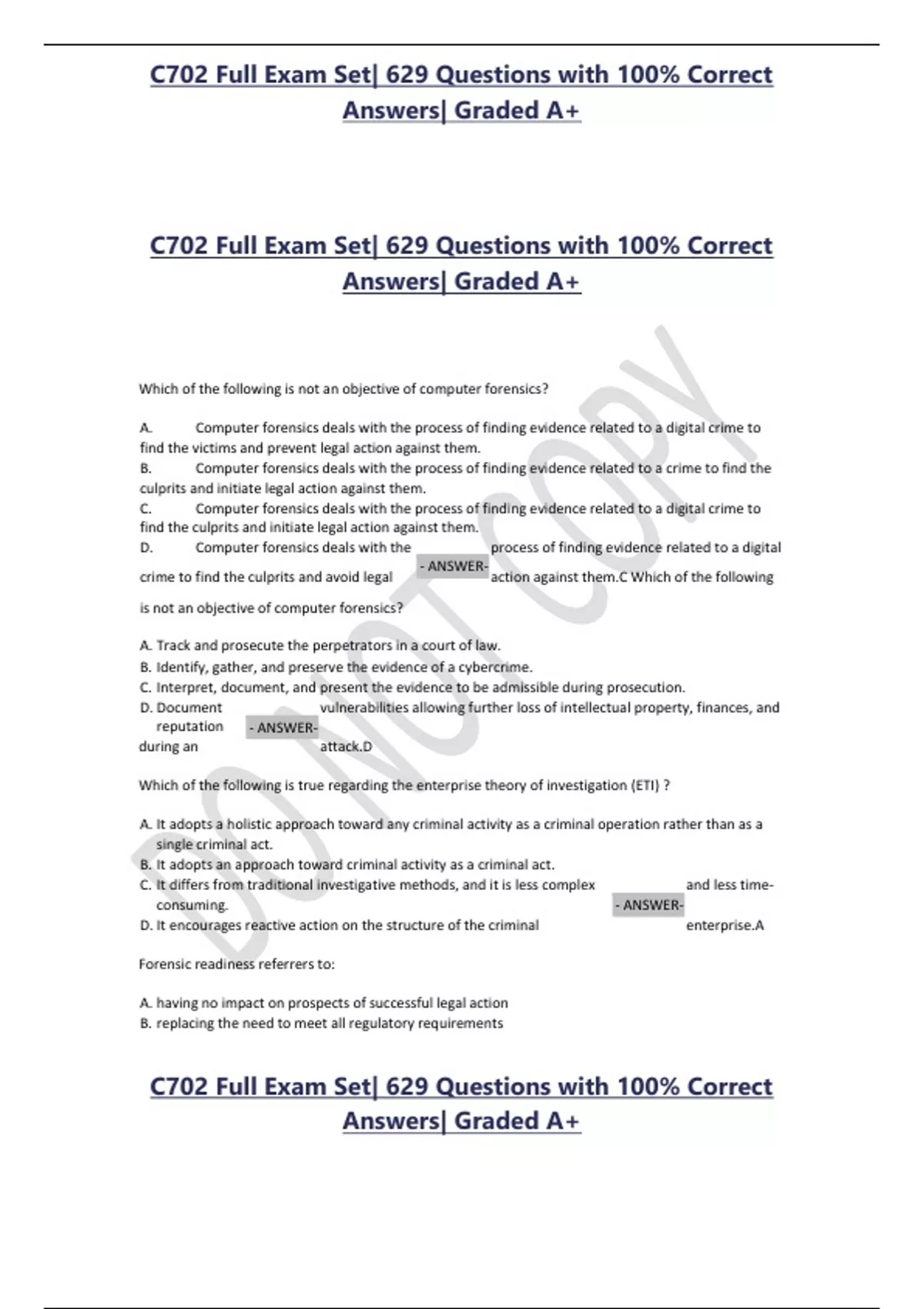 C702 Full Exam Set| 629 Questions with 100% Correct Answers| Graded A+