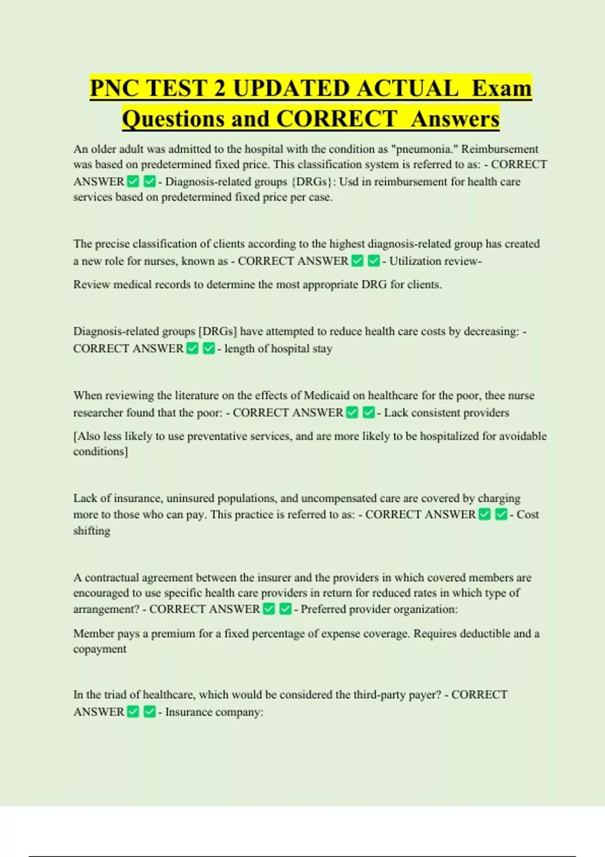 services? - CORRECT ANSWER - Capitation: Insurance company pays the provider a set