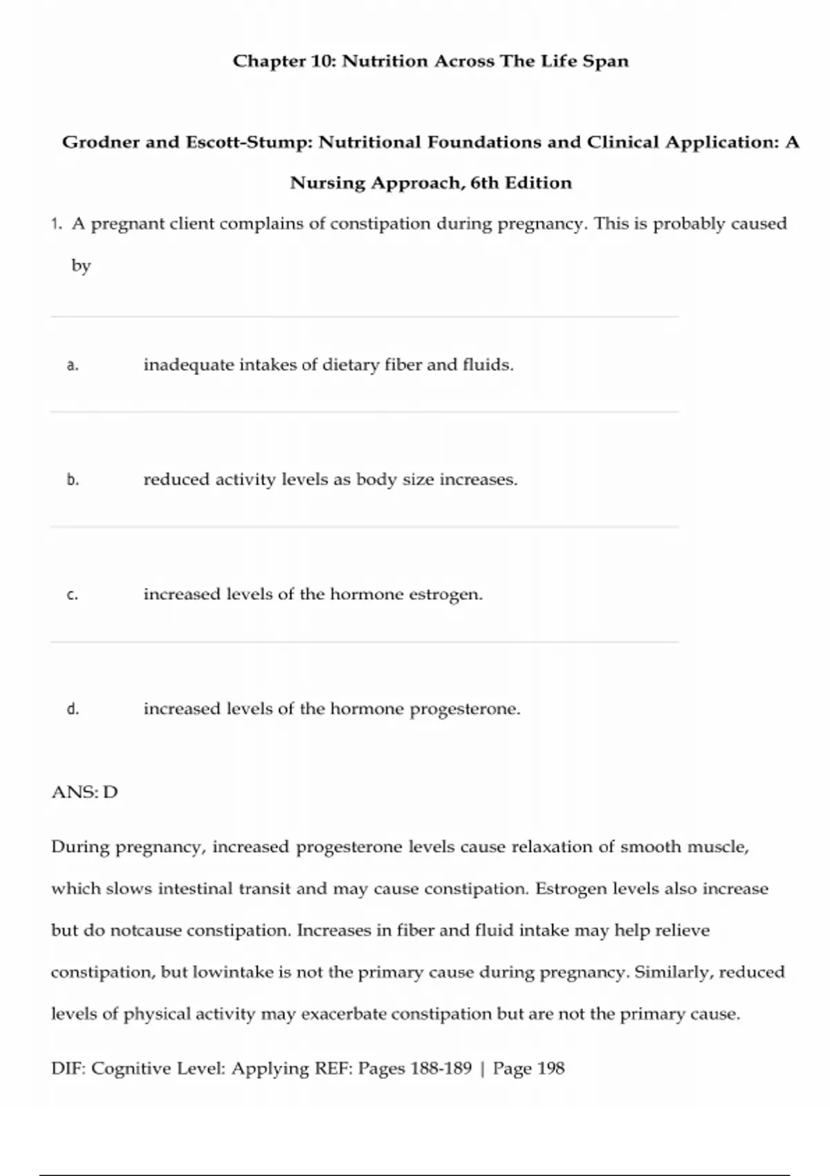 ATI Chapter 10: Nutrition Across The Life Span (Nutritional Foundations and Clinical Applications: A Nursing Approach 6th Edition by Michele Grodner, Sylvia Escott-Stum, Suzanne Dorner. LATEST QUESTIONS AND ANSWERS WITH EXPLANATION