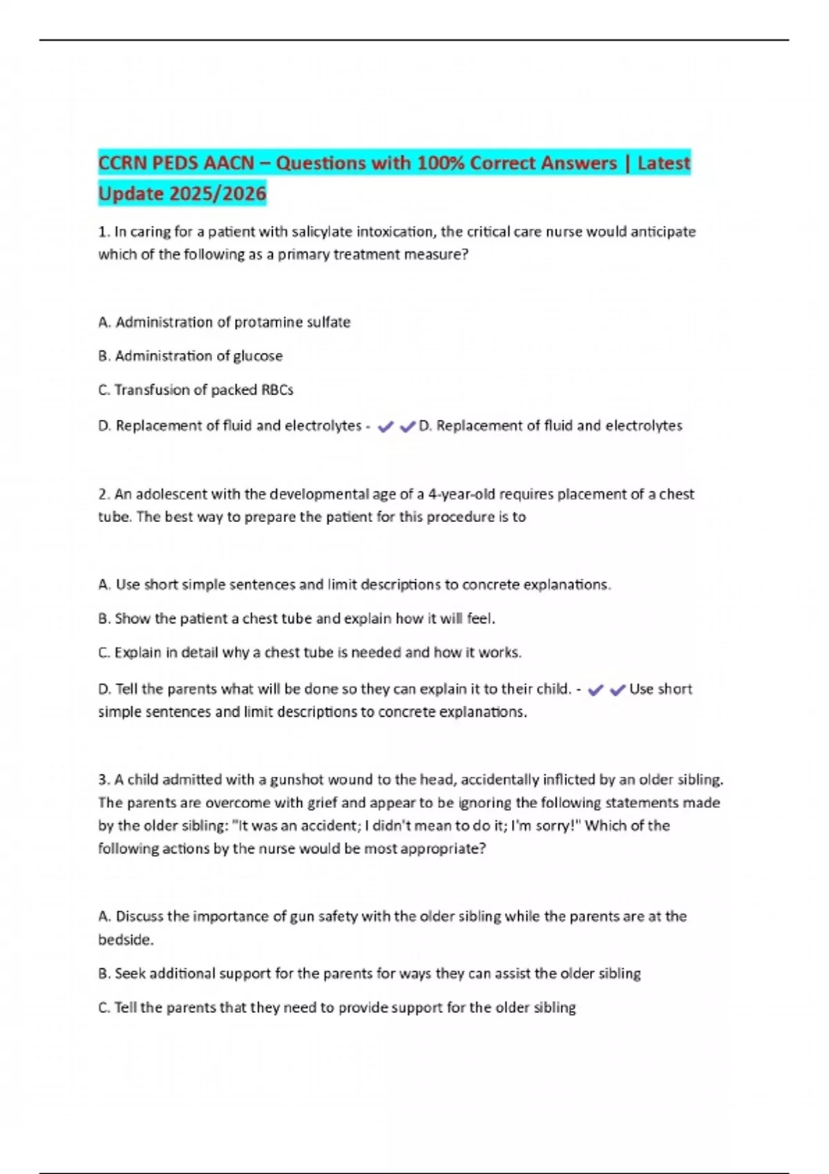 ccrn peds aacn questions with 100 correct answe