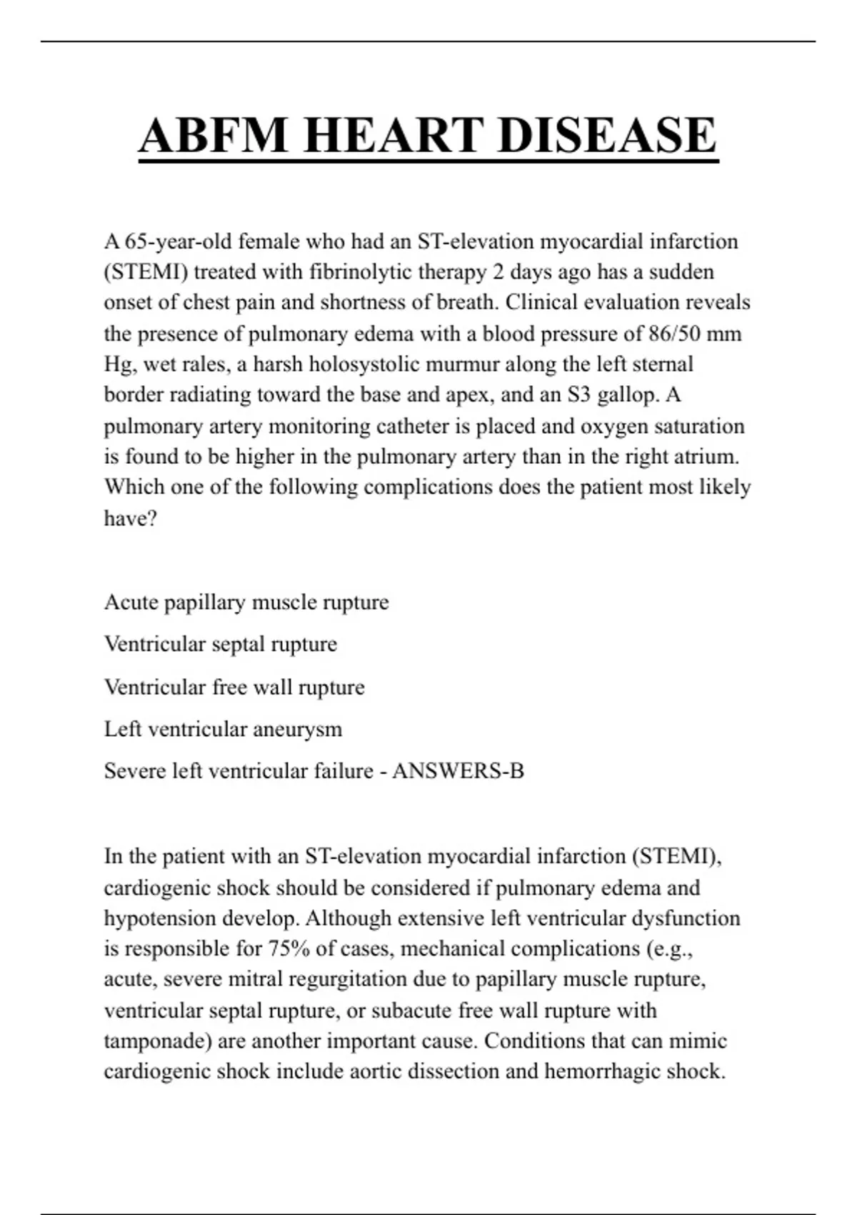 ventricular septal rupture, or subacute free wall rupture with