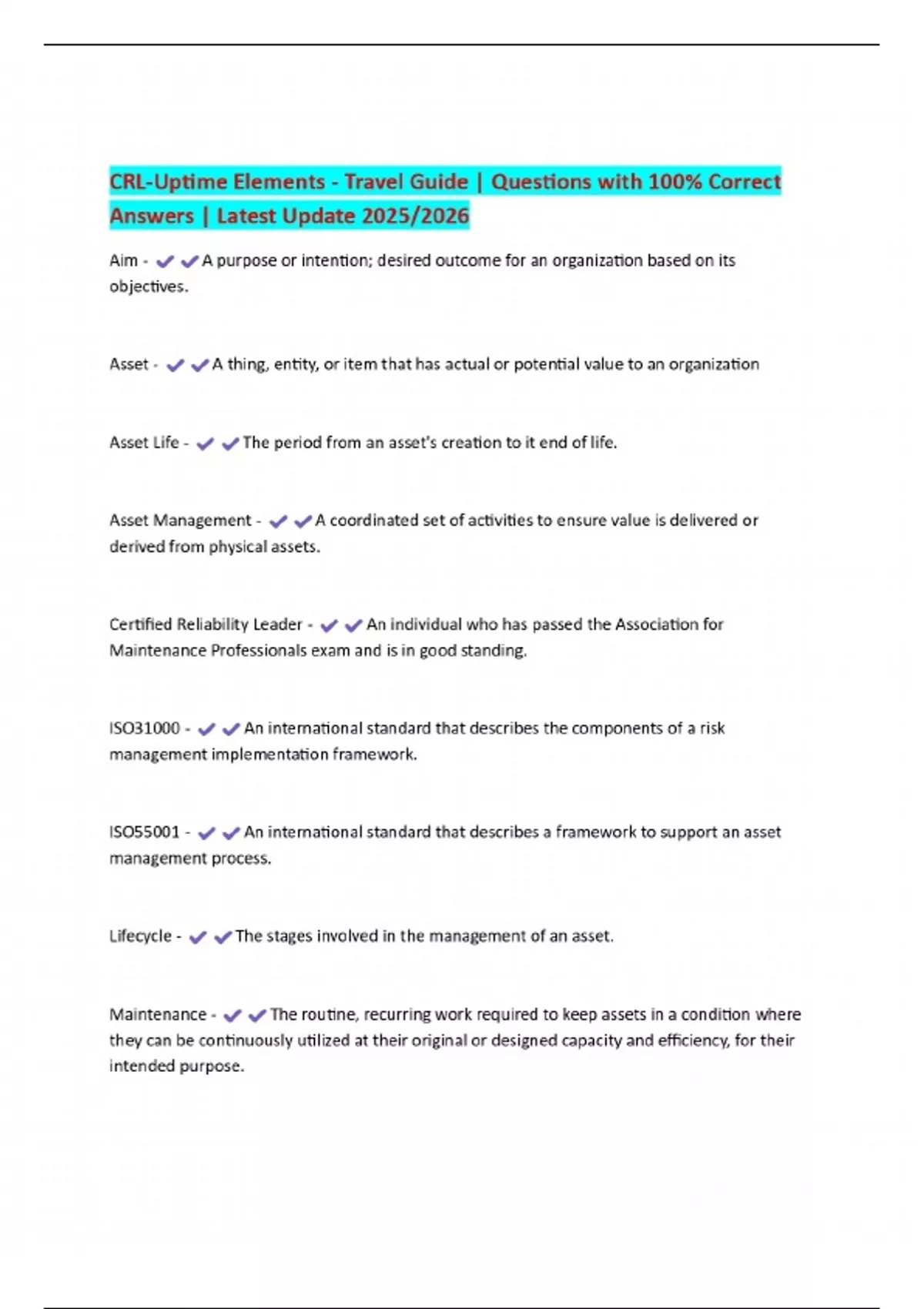 CRL-Uptime Elements - Travel Guide | Questions with 100% Correct Answers | Latest Update 2025/2026