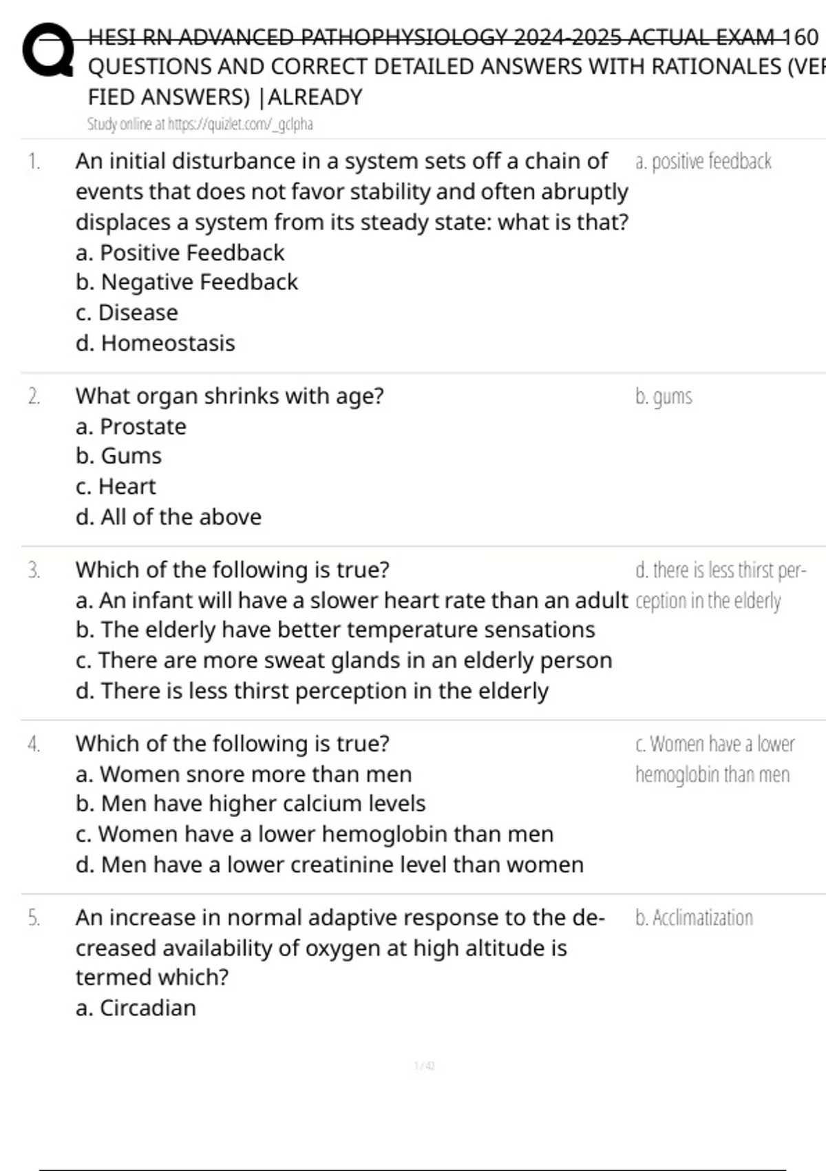 HESI RN ADVANCED PATHOPHYSIOLOGY ACTUAL EXAM 160 QUESTIONS AND CORRECT DETAILED ANSWERS WITH RATIONALES (VERIFIED ANSWERS) |ALREADY