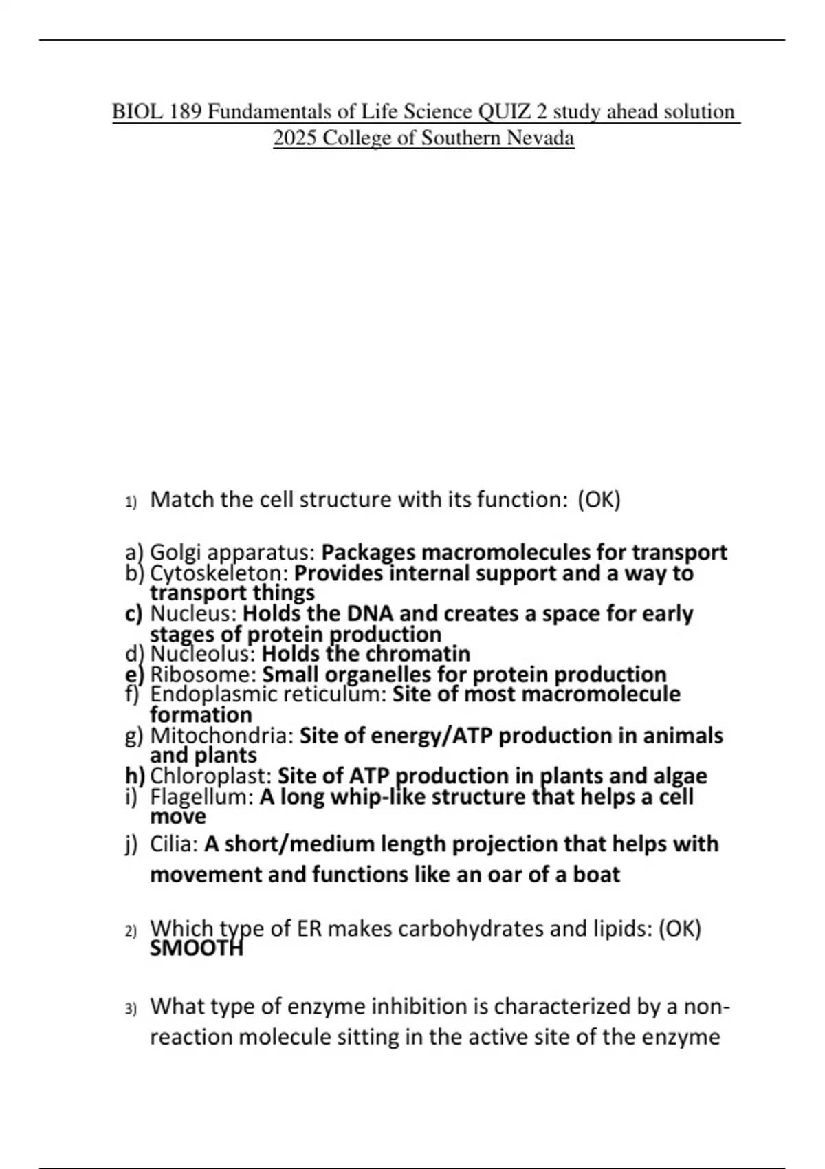 1) Match the cell structure with its function: (OK)