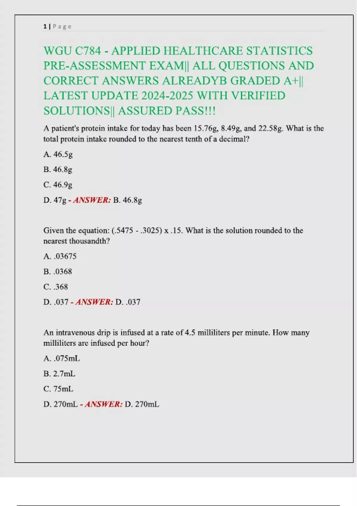WGU C784 - APPLIED HEALTHCARE STATISTICS PRE-ASSESSMENT EXAM QUESTIONS AND VERIFIED ANSWERS 100% CORRECT