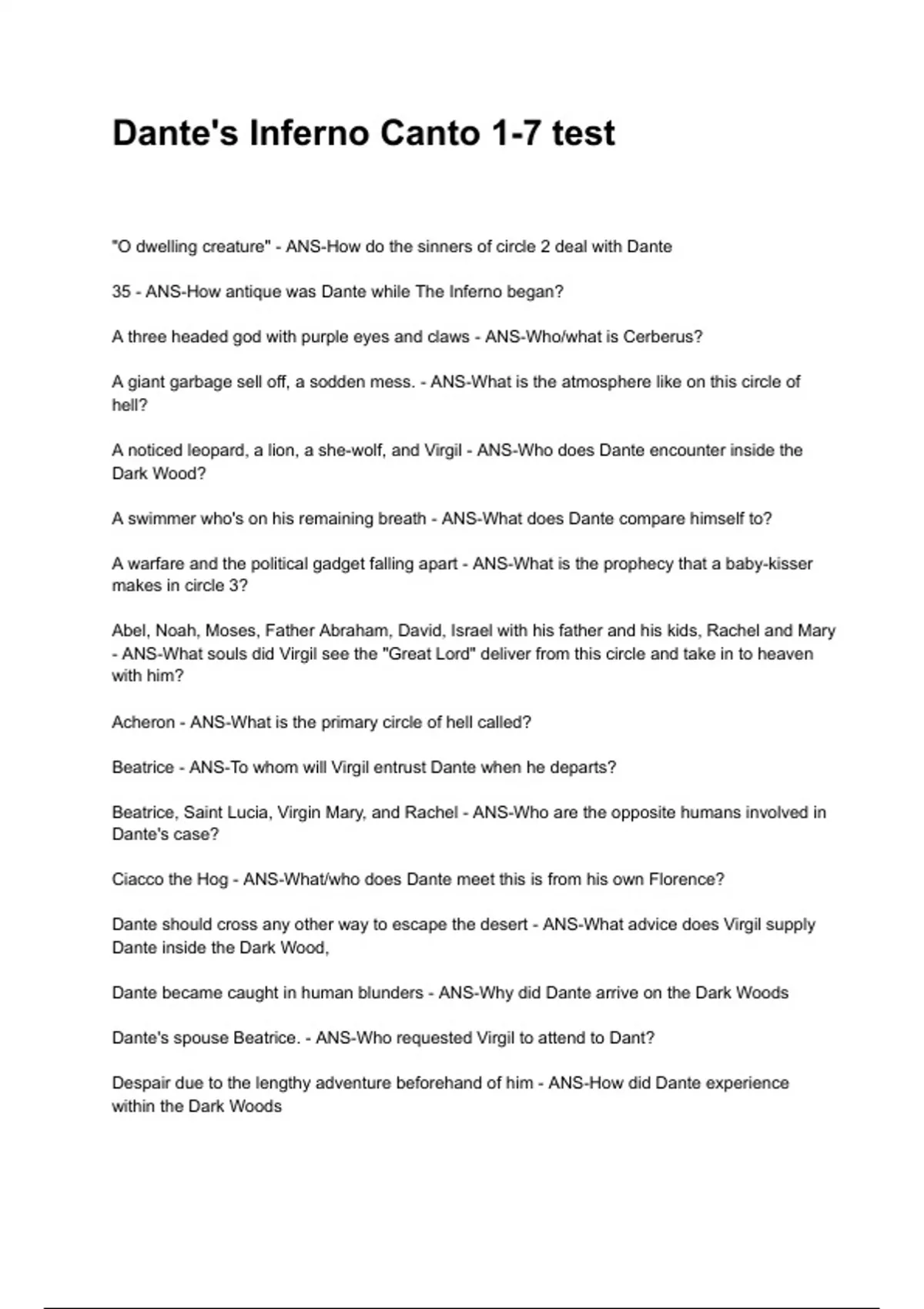 35 - ANS-How antique was Dante while The Inferno began?