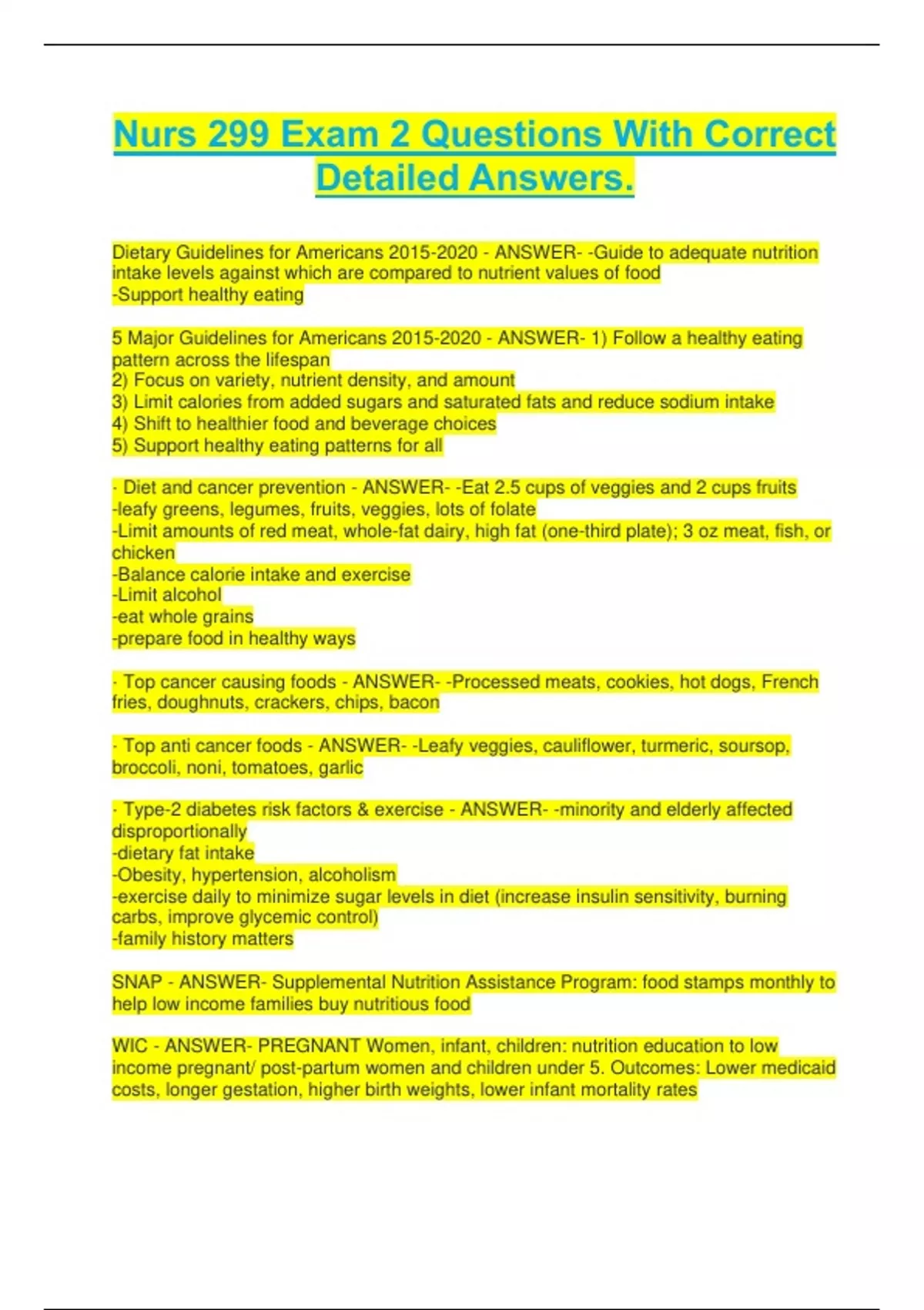 Nurs 299 Exam 2 Questions With Correct