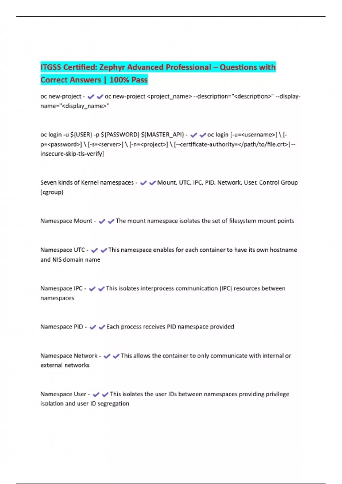 ITGSS Certified: Zephyr Advanced Professional – Questions with Correct Answers | 100% Pass