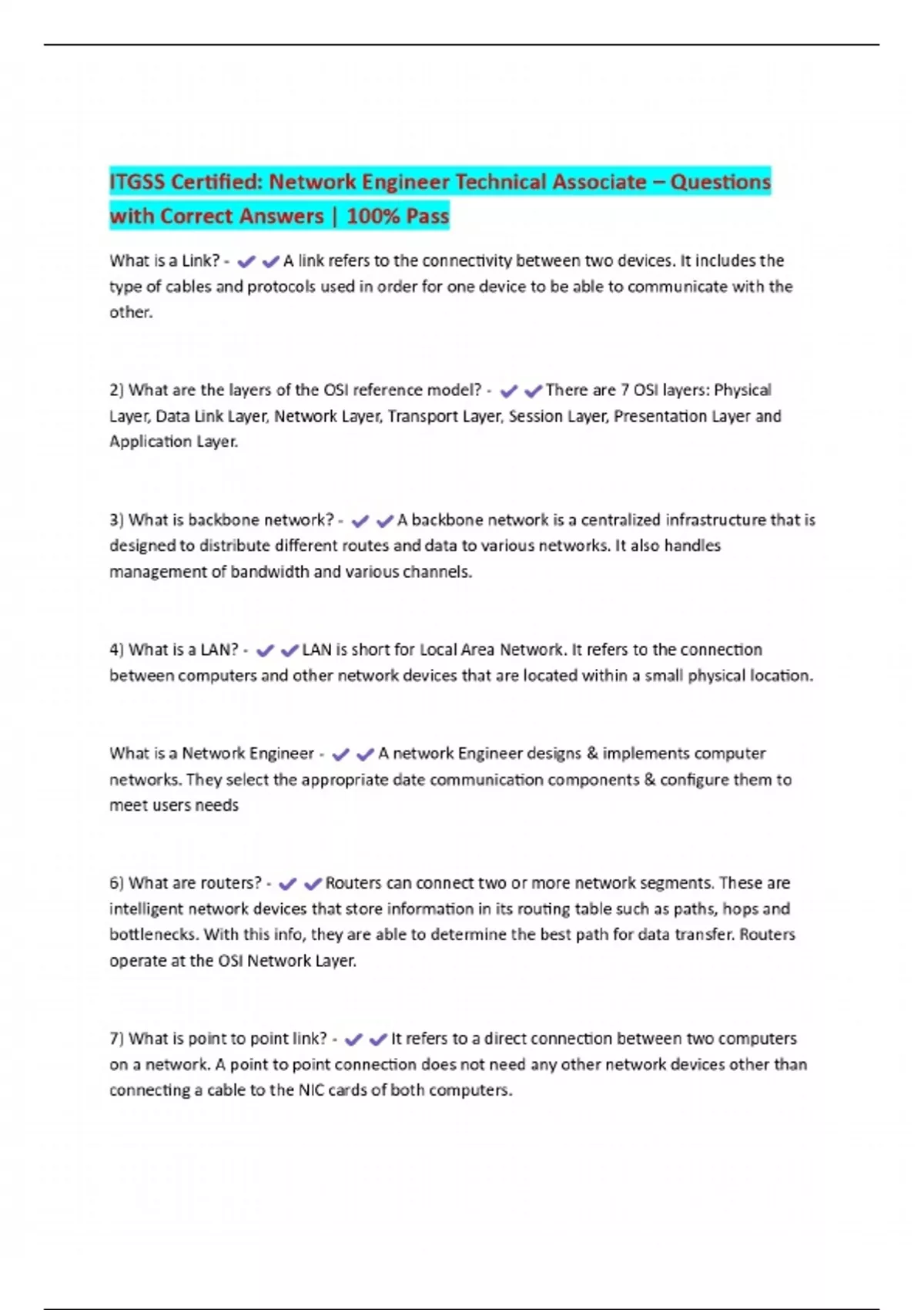 ITGSS Certified: Network Engineer Technical Associate – Questions with Correct Answers | 100% Pass