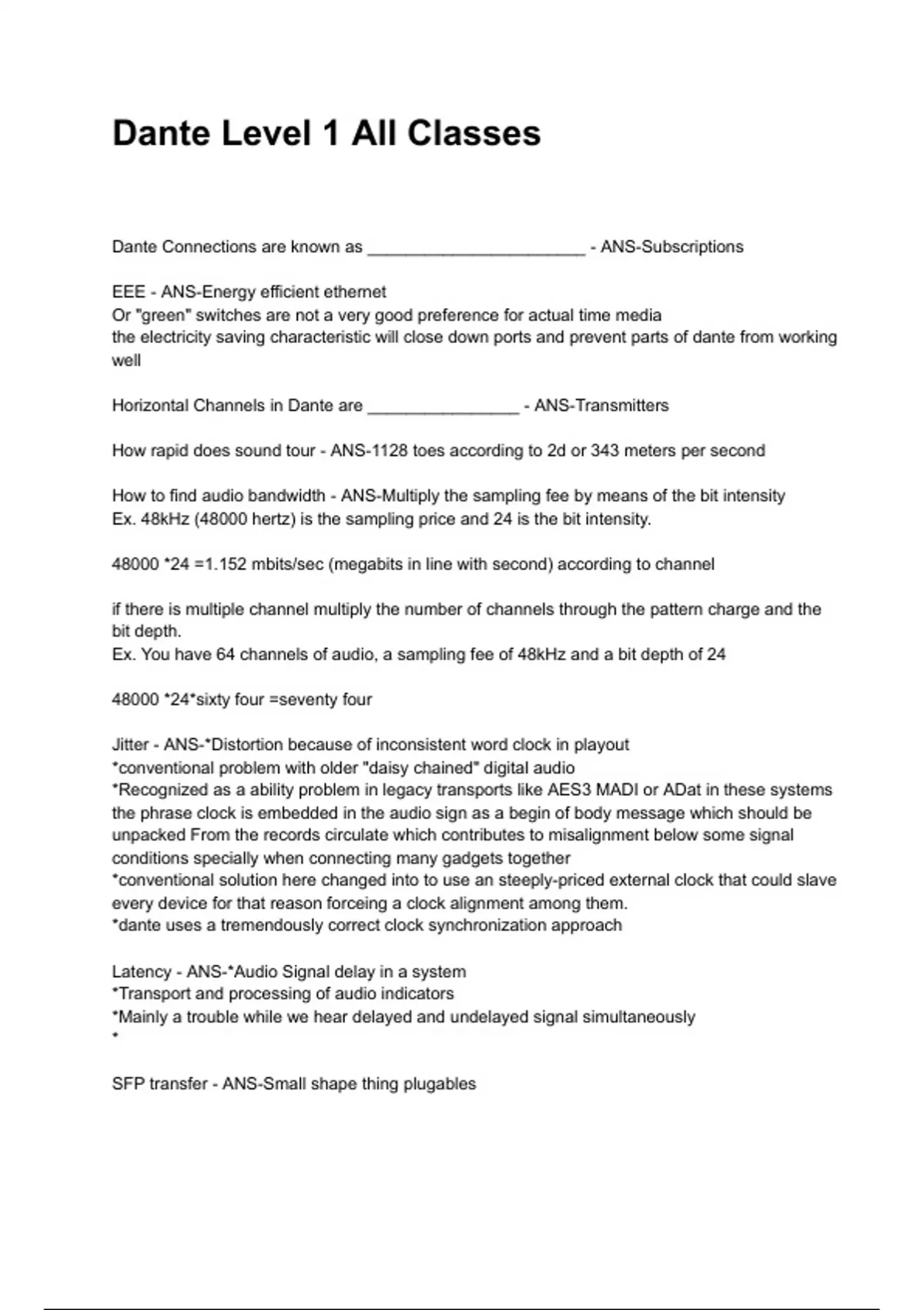 Ex. You have 64 channels of audio, a sampling fee of 48kHz and a bit depth of 24