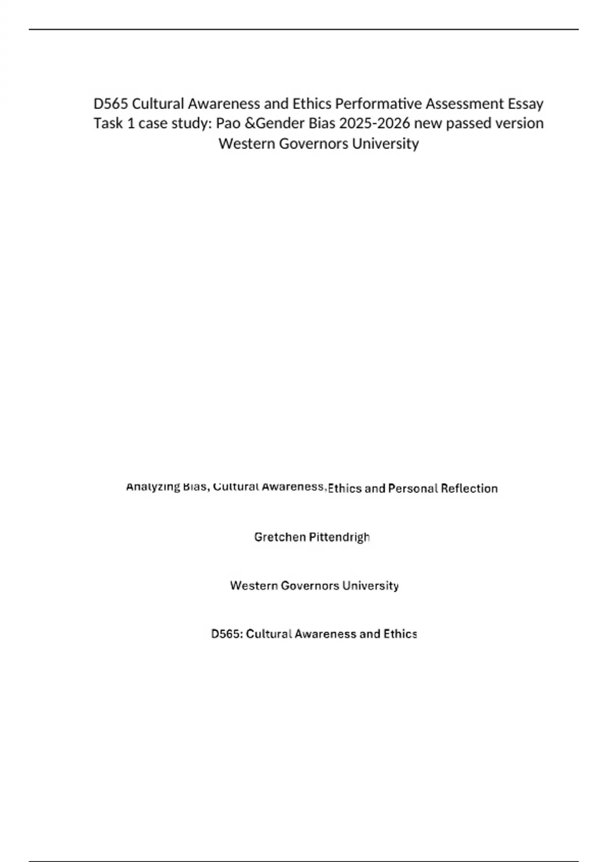 D565 Cultural Awareness and Ethics Performative Assessment Essay Task 1 case study: Pao &Gender Bias new passed version Western Governors University