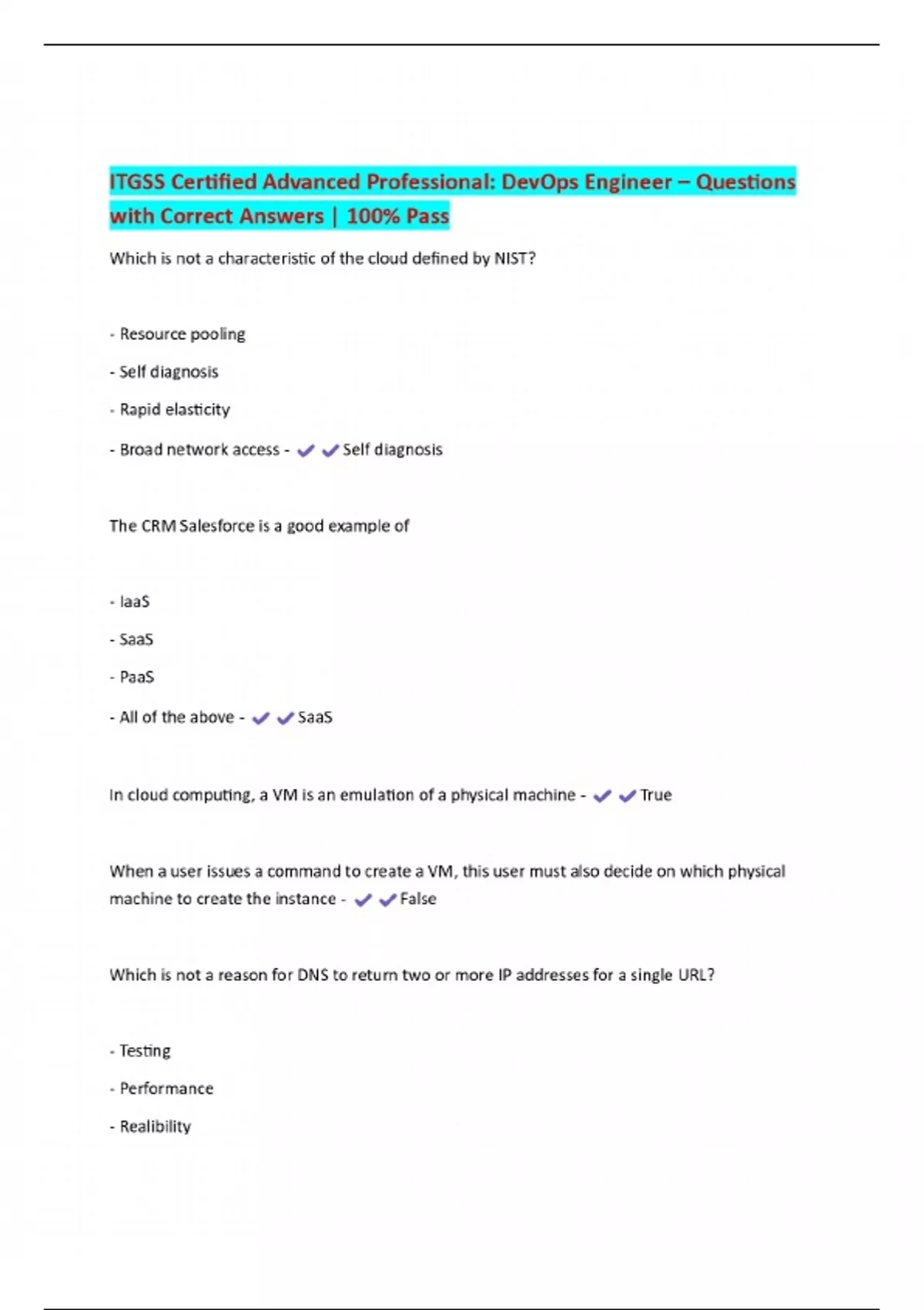 ITGSS Certified Advanced Professional: DevOps Engineer – Questions with Correct Answers | 100% Pass