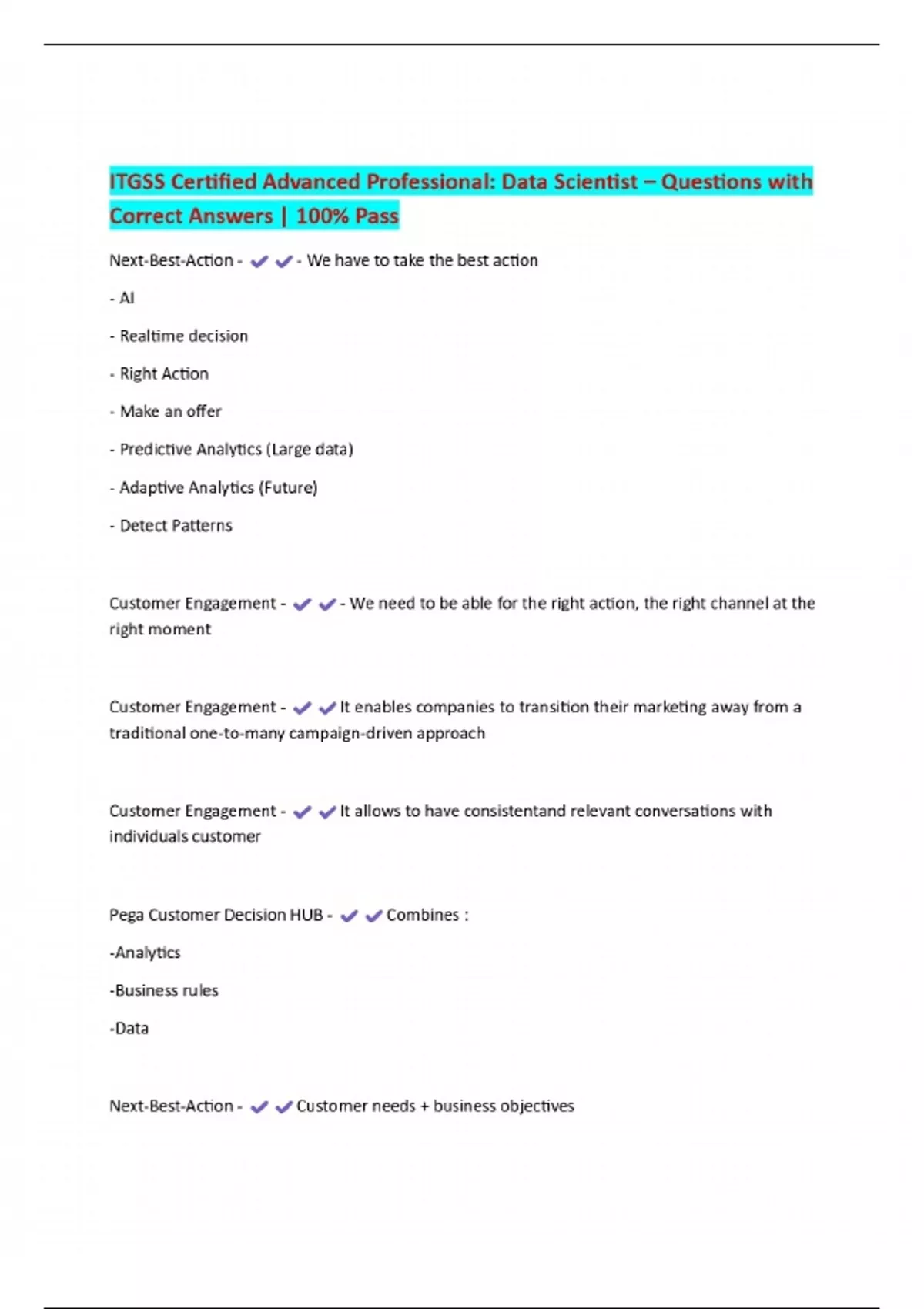 ITGSS Certified Advanced Professional: Data Scientist – Questions with Correct Answers | 100% Pass