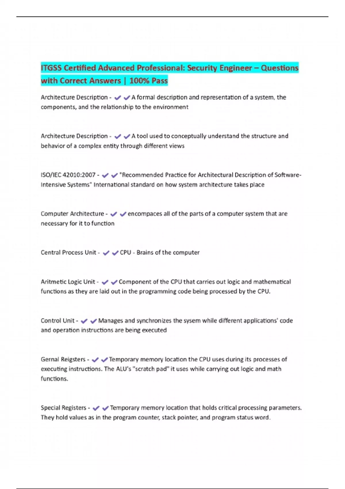 ITGSS Certified Advanced Professional: Security Engineer – Questions with Correct Answers | 100% Pass