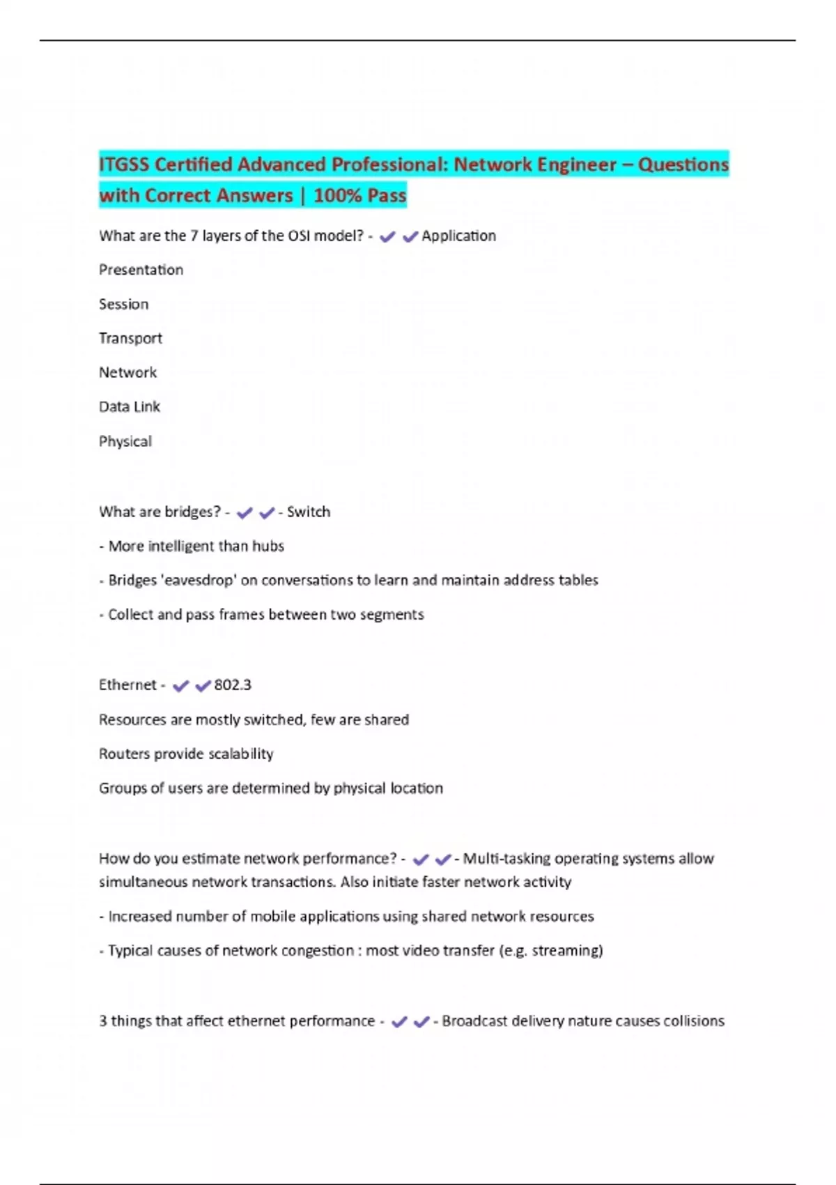 ITGSS Certified Advanced Professional: Network Engineer – Questions with Correct Answers | 100% Pass
