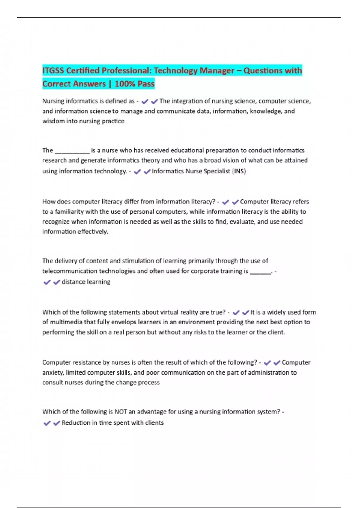 ITGSS Certified Professional: Technology Manager – Questions with Correct Answers | 100% Pass