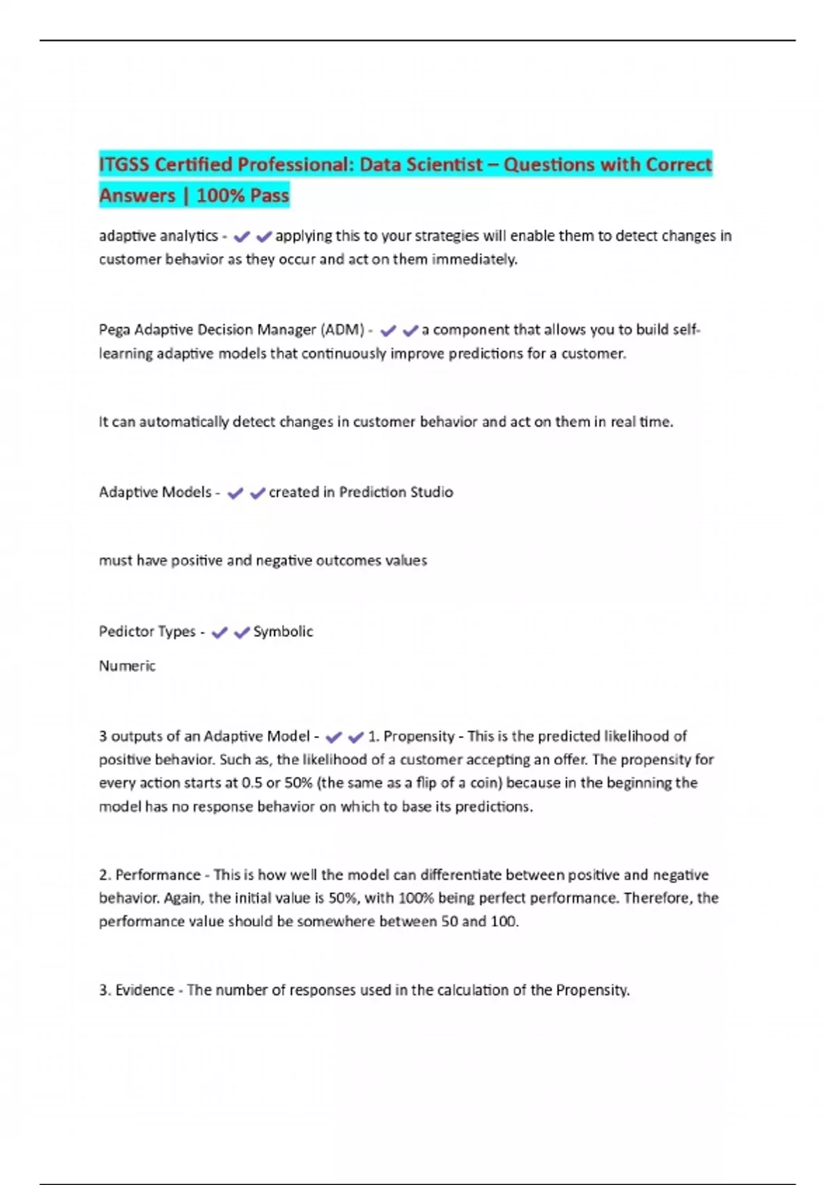 ITGSS Certified Professional: Data Scientist – Questions with Correct Answers | 100% Pass