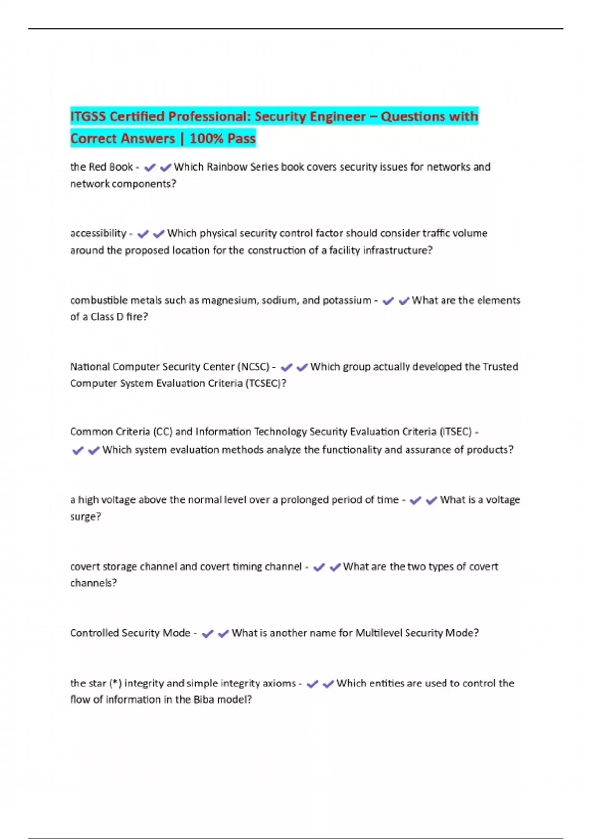 ITGSS Certified Professional: Security Engineer – Questions with Correct Answers | 100% Pass