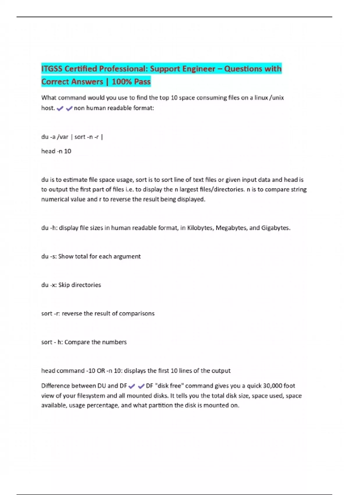 ITGSS Certified Professional: Support Engineer – Questions with Correct Answers | 100% Pass