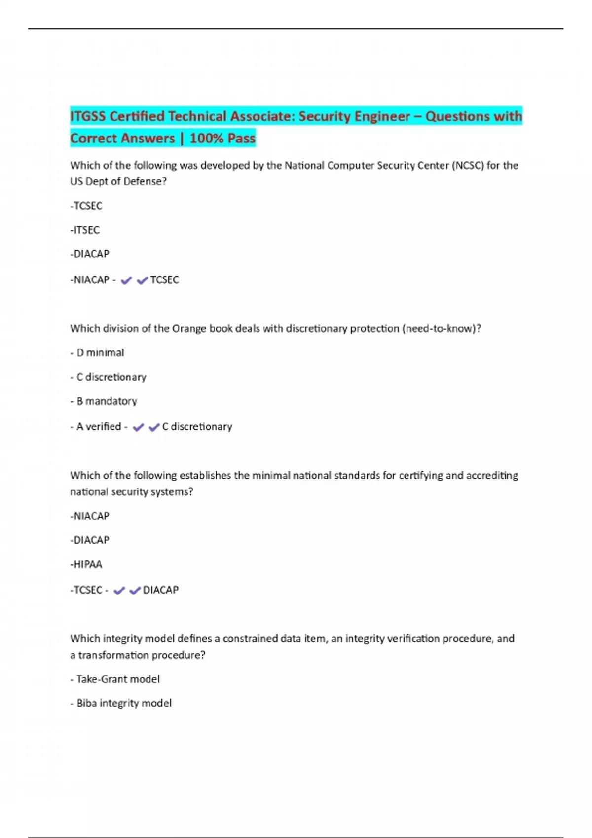 ITGSS Certified Technical Associate: Security Engineer – Questions with Correct Answers | 100% Pass