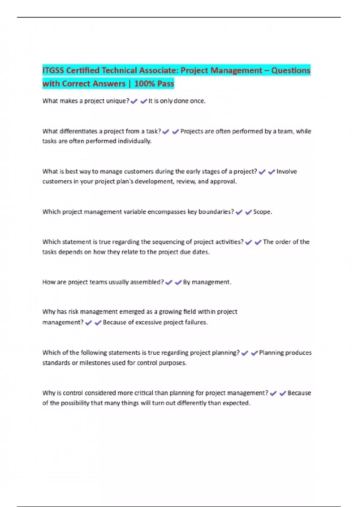 ITGSS Certified Technical Associate: Project Management – Questions with Correct Answers | 100% Pass
