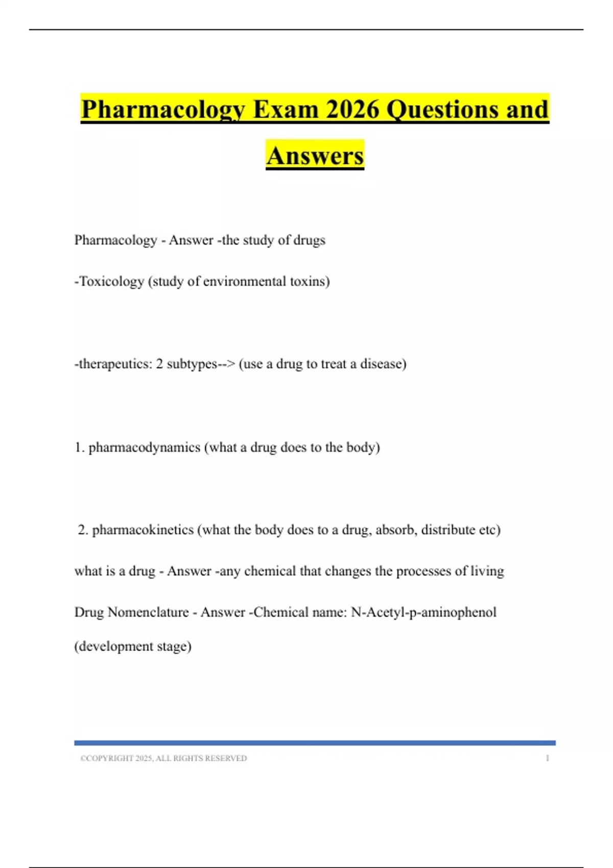 Pharmacology Exam 2026 Questions and
