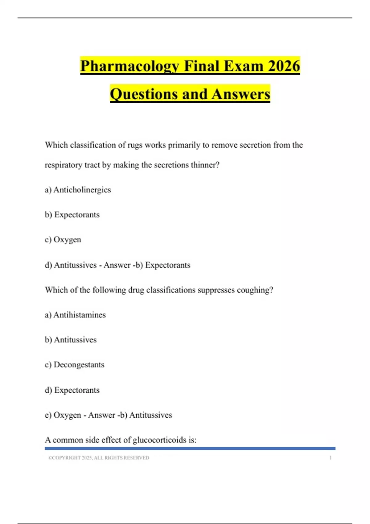 Pharmacology Final Exam 2026