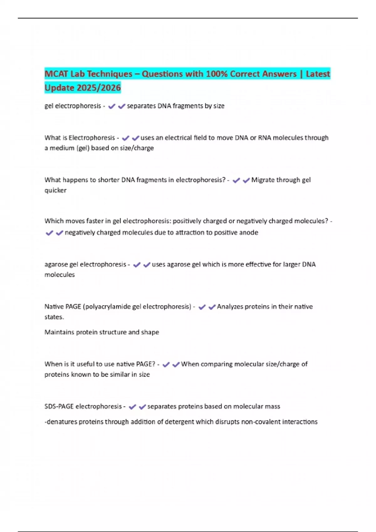 MCAT Lab Techniques – Questions with 100% Correct Answers | Latest Update 2025/2026
