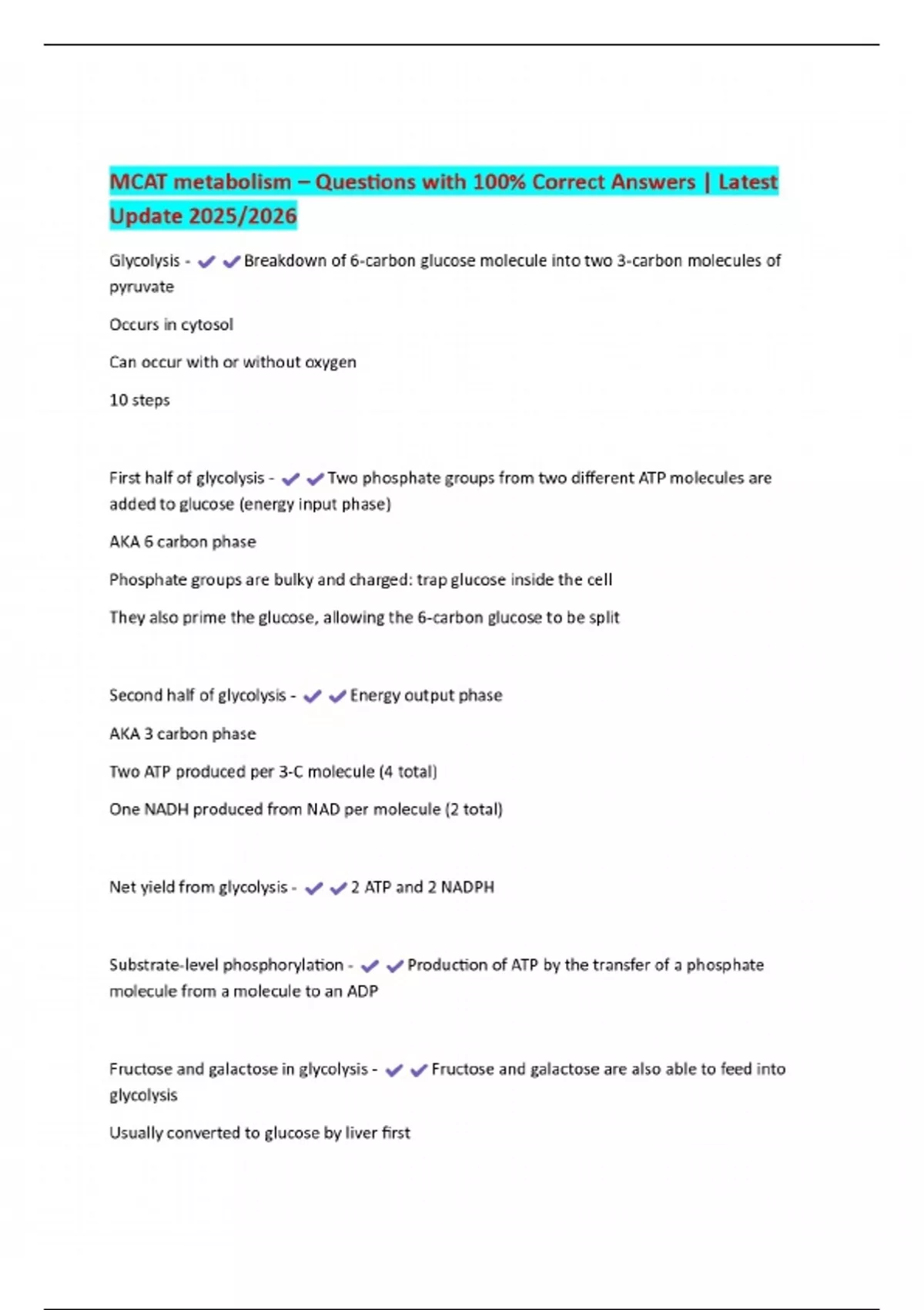 MCAT metabolism – Questions with 100% Correct Answers | Latest Update 2025/2026