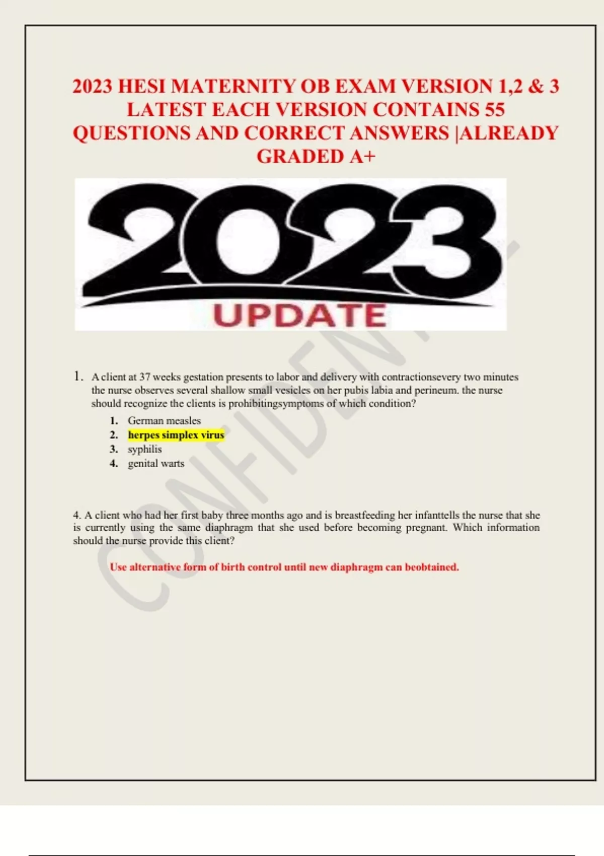 2023 HESI MATERNITY OB EXAM VERSION 1,2 & 3 LATEST EACH VERSION CONTAINS 55 QUESTIONS AND CORRECT ANSWERS |ALREADY GRADED A+