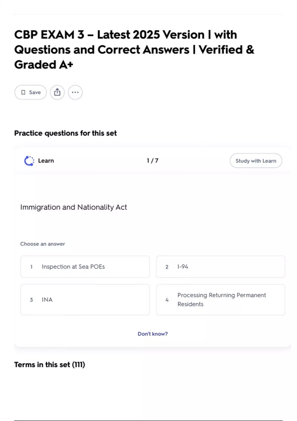 CBP EXAM 3 – Latest 2025 Version | with Questions and Correct Answers | Verified & Graded A+
