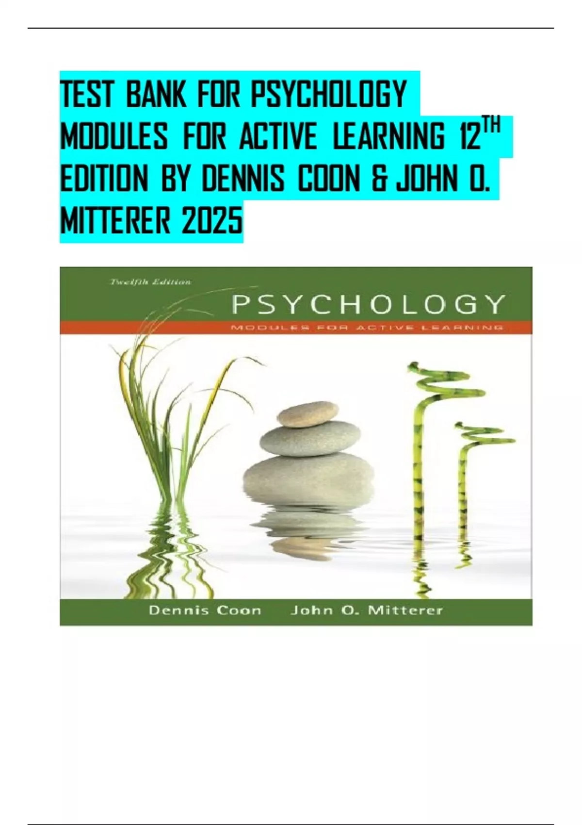 TEST BANK FOR PSYCHOLOGY MODULES FOR ACTIVE LEARNING 12TH EDITION BY DENNIS COON & JOHN O. MITTERER 2025