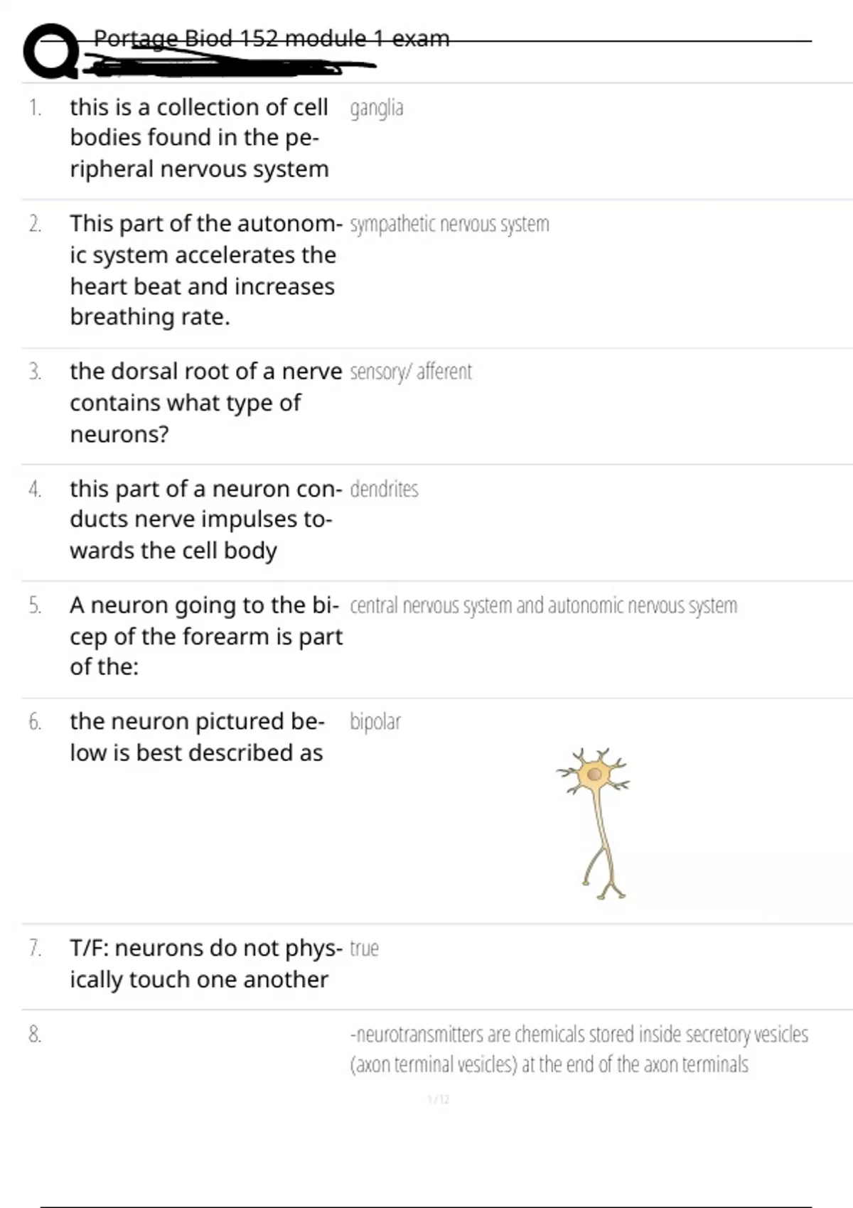 6. the neuron pictured be- bipolar