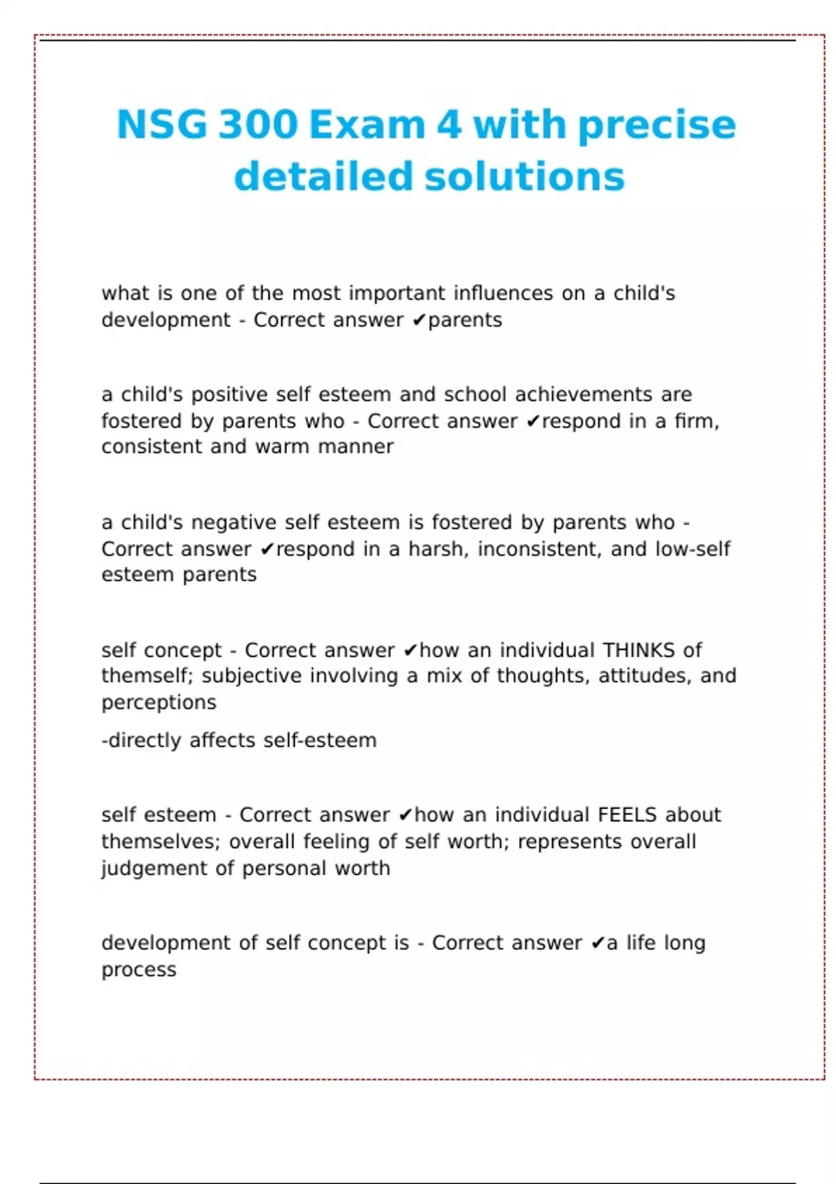 development of self concept is - Correct answer ✔a life long