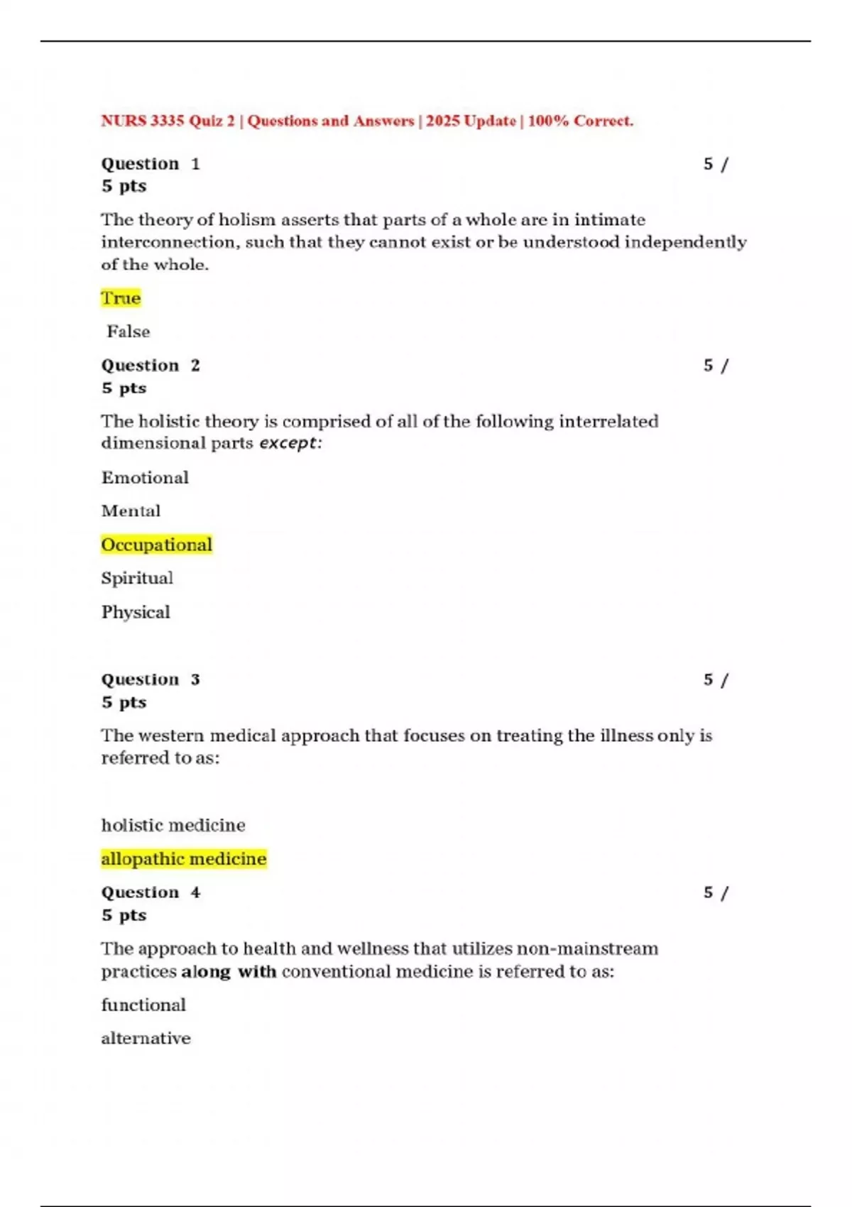 NURS 3335 Quiz 2 | Questions and Answers | 2025 Update | 100% Correct.