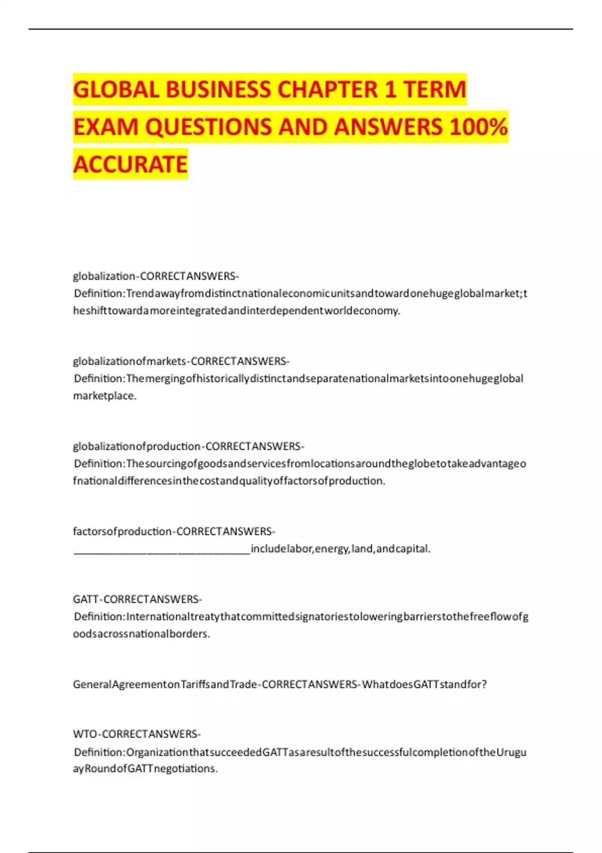 General Agreement on Tariffs and Trade - CORRECT ANSWERS- What does GATT stand for?