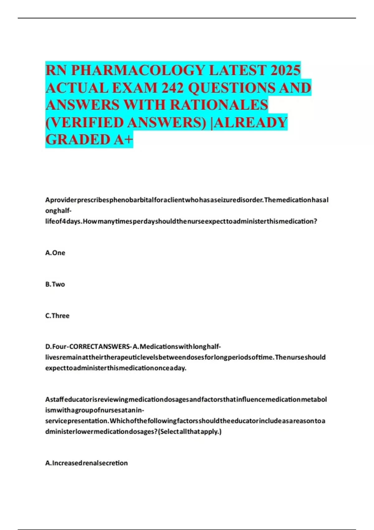 D. Four - CORRECT ANSWERS- A. Medications with long half-